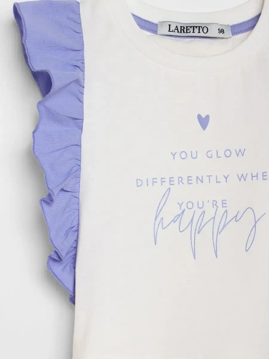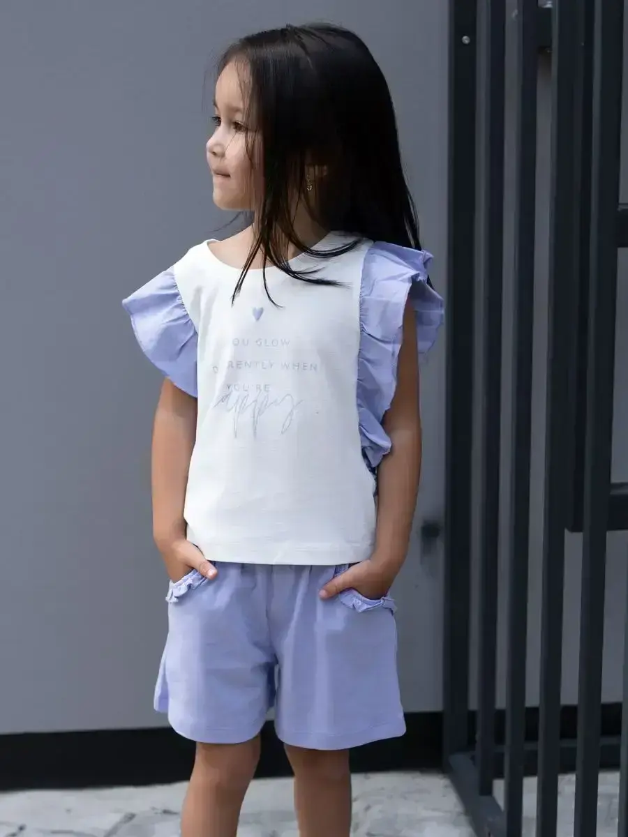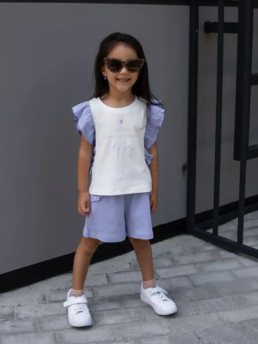Костюм для девочки летний от бренда LARETTO непременно станет фаворитом в гардеробе Вашего ребенка! Трикотажная футболка с шортами - самая подходящая одежда на лето для детского сада, активного отдыха на природе, путешествий, похода в кино, гости или на праздник. Одежда для девочки выполнена из нежнейшего хлопка, невероятно мягкая и дышащая, имеет рюши на шортах и на топе, короткий рукав и принт в виде надписи. Демисезонный комплект для детей lareto из майки и шорт максимально удобен, прилегает к телу и не сковывает движения. Одежда детская для малыша без застежек, поэтому Ваш ребенок сможет одеваться самостоятельно. Независимо от того, хотите ли вы использовать этот костюм осенью, весной или летом, он будет легким и комфортным. Эта двойка для тех, кто ищет стильную одежду для детей! Не упустите возможность приобрести товар для вашего ребенка уже сегодня! Приятных Вам покупок!