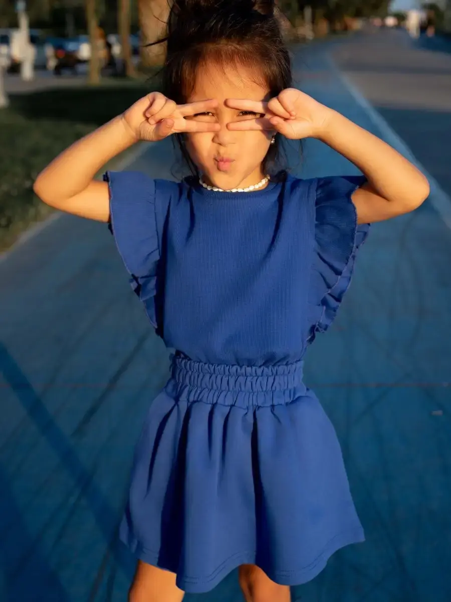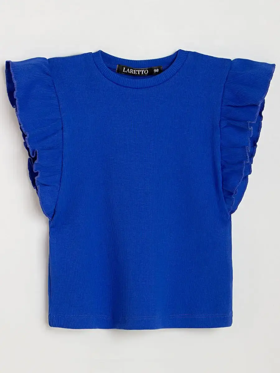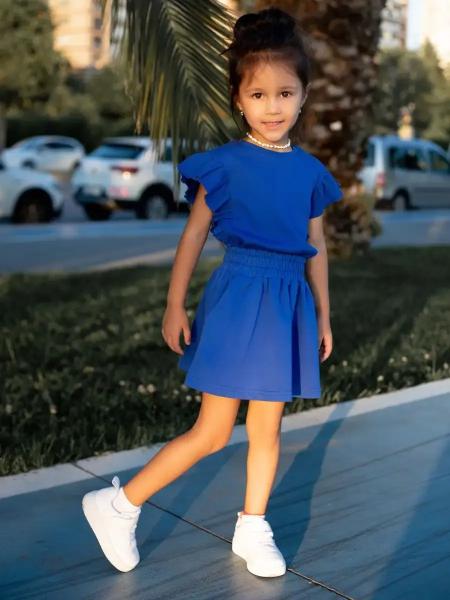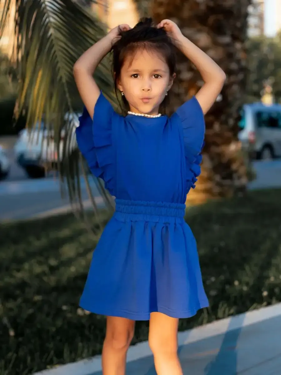 Костюм летний трикотажный непременно станет самым любимым в гардеробе каждой юной модницы! Майка детская в рубчик с рукавами рюшами и юбка мини выше колена - это подходящий вариант для садика, активного отдыха на природе, путешествий, похода в кино, гости или на праздник. Топик для девочки выполнен из нежнейшего трикотажа кашкорсе, невероятно мягкой и эластичной и ткани, которая практически не ощутима во время носки. Юбочка на резинке из футера хорошо сидит, держит форму и подчеркивают силуэт. Футболка хорошо сочетается с любым низом и верхом в одежде. Нарядный костюм идеален для праздничного торжества или фотосессии. Комплект не имеет застежек, поэтому Ваш ребенок сможет легко одеваться самостоятельно. Модель подойдет как малышкам, так и подросткам. Вся коллекция вещей для детей отшивается из натуральных, дышащих материалов Премиум качества и поэтом не вызывает раздражения и дискомфорта на коже. Не упустите возможность приобрести этот качественный товар уже сегодня! Он станет чудесным подарком дочке, сестре, внучке, племяннице без повода и на любое событие. Порадуйте своего ребенка красивой и стильной одеждой от российского бренда LARETTO. Приятных Вам покупок!