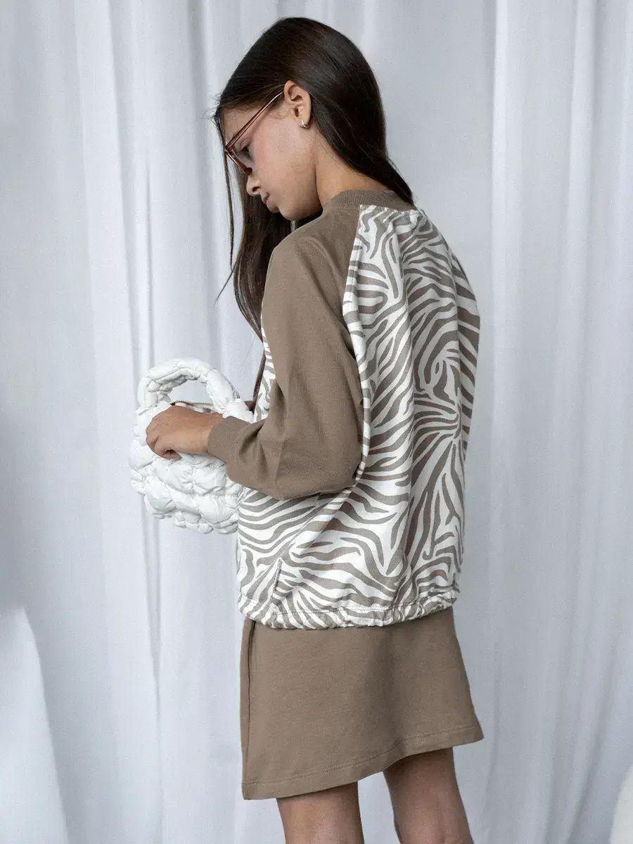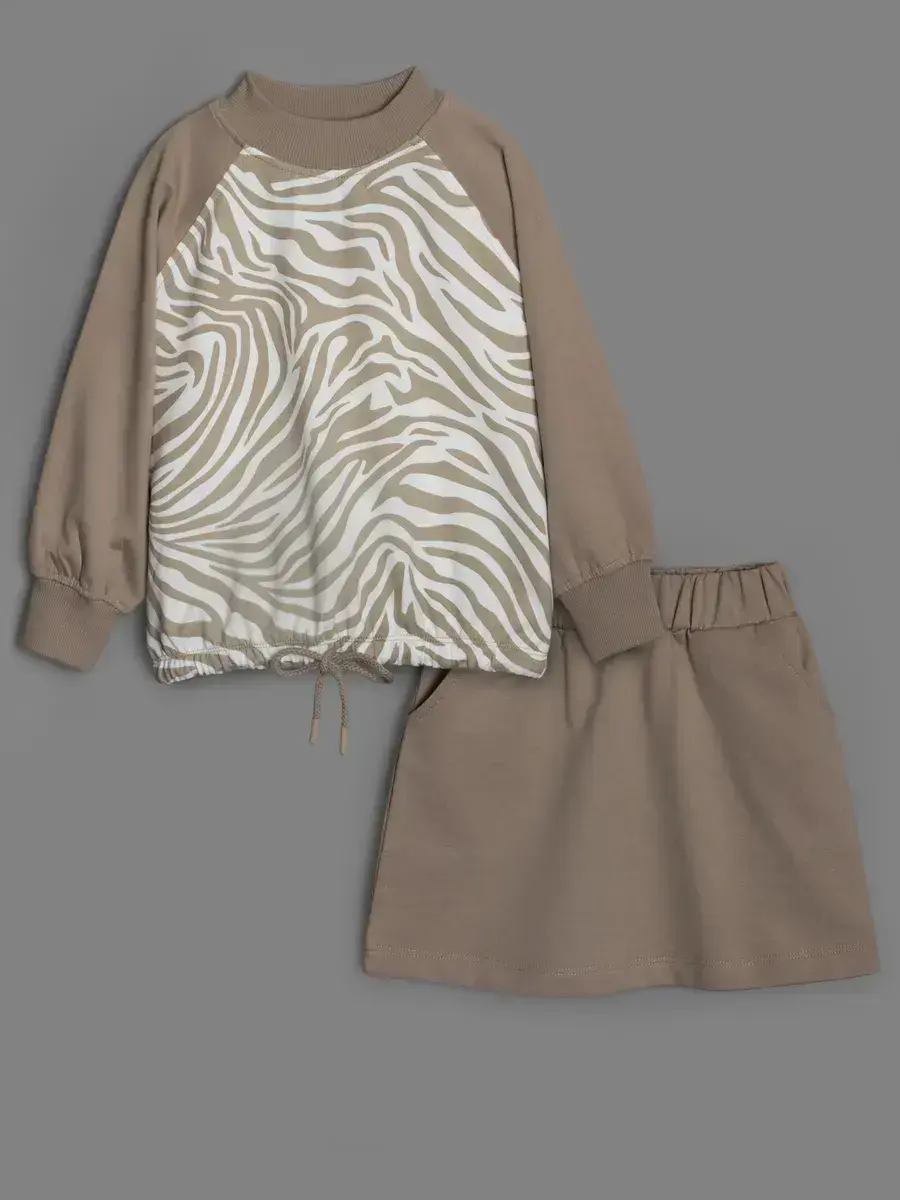 Представляем стильный костюм для девочки, состоящий из уютного свитшота и модной юбки! Этот детский комплект идеально подходит для активных игр, прогулок и повседневной носки. Свитшот для девочек выполнен из мягкого, дышащего материала, обеспечивая комфорт в любое время года. Яркие цвета и оригинальный принт делают его настоящим модным акцентом в гардеробе вашей маленькой леди.
