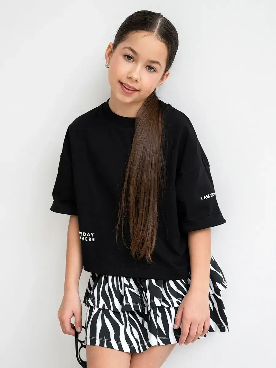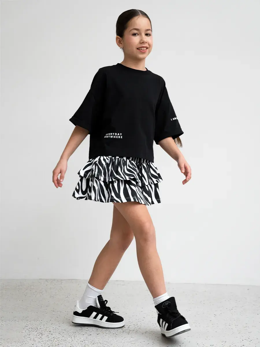 LRTT-084/00-0034533/Футболка+юбка/Черно-белый