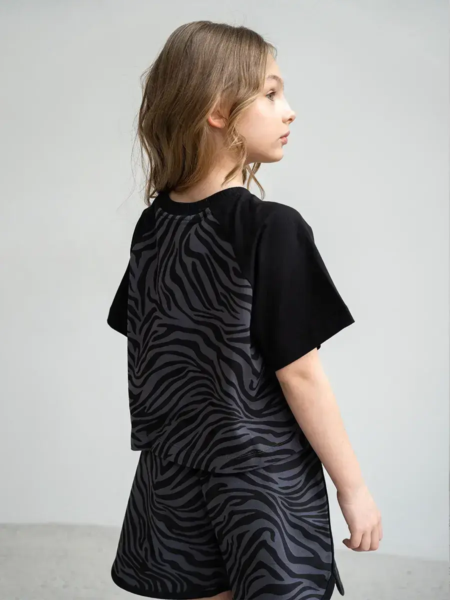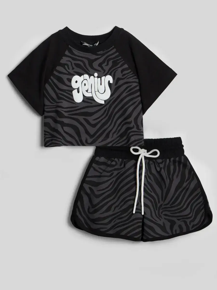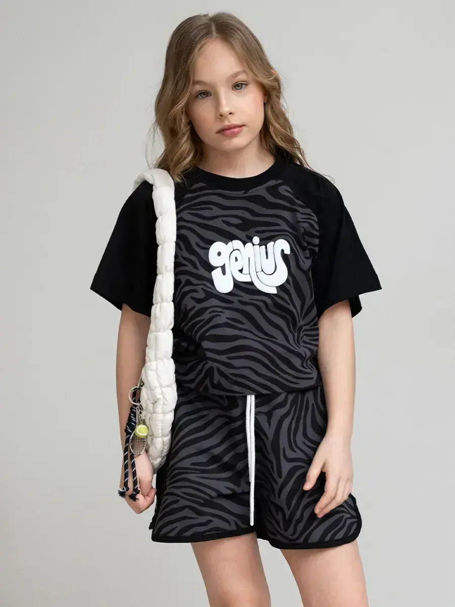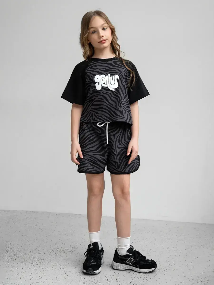 Яркие цвета и современный дизайн делают этот летний костюм для девочки стильным решением для любого гардероба. Шортики легко комбинируются с разными вещами, позволяя создавать модные образы.