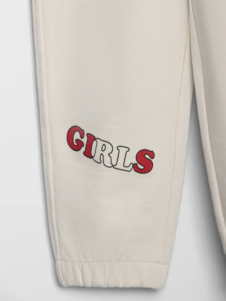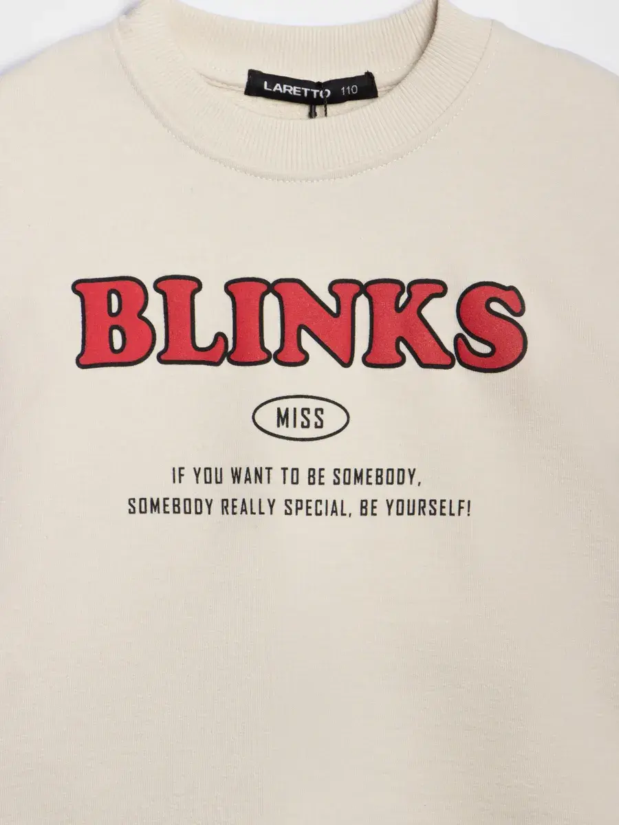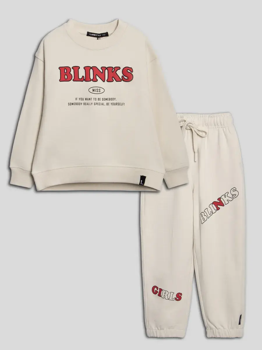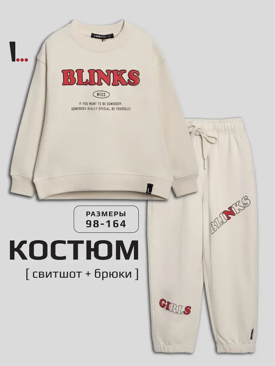 Стильный и удобный бежевый костюм для девочки, состоящий из свитшота и брюк. Изготовлен из высококачественного материала, который дарит комфорт на протяжении всего дня.