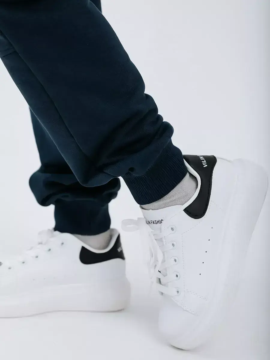 Брюки джоггеры для мальчика школьные: Прямые брюки на эластичной резинке гарантируют комфорт при носке весь день. Дополнительные завязки помогут отрегулировать ширину по талии для идеальной посадки. Легкая ткань делает их подходящими как для осенней погоды, так и для прохладных летних вечеров.