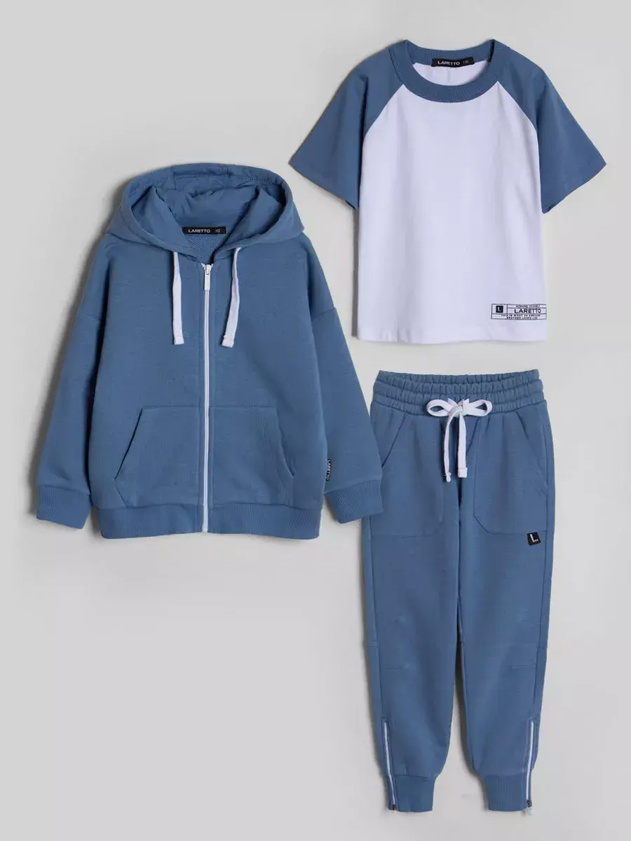 Костюм для мальчиков в школу — идеальное сочетание стиля и комфорта. Костюм детский состоит из уютного худи с капюшоном на молнии и брюк на резинке, а также трикотажной фктболки. Каждый элемент костюма для мальчиков создан с заботой о детях, предпочитающих активный образ жизни.