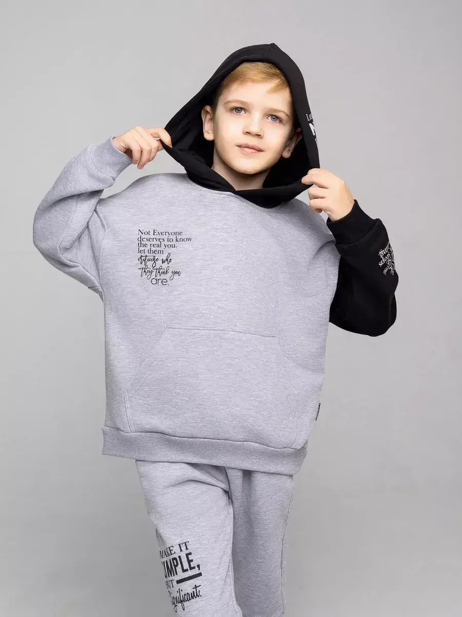 Костюм школьный для мальчика от бренда LARETTO можно смело назвать находкой для гардероба Вашего ребенка! Толстовка и брюки джоггеры для мальчика станут прекрасным вариантом для повседневной носки дома, школы, садика и тренировок на свежем воздухе. Детский школьный комплект выполнен из футера 3-х нитка. Худи для мальчика стала по-настоящему популярной не только среди детей и подростков. Она очень практична в переменчивую погоду межсезонья и прохладными летними вечерами. Нельзя не отметить вместительные карманы кенгуру на изделии, которые придают не только стильный вид, но и увеличивают функциональность этого ансамбля. Удобный капюшон хорошо защищает от ветра.