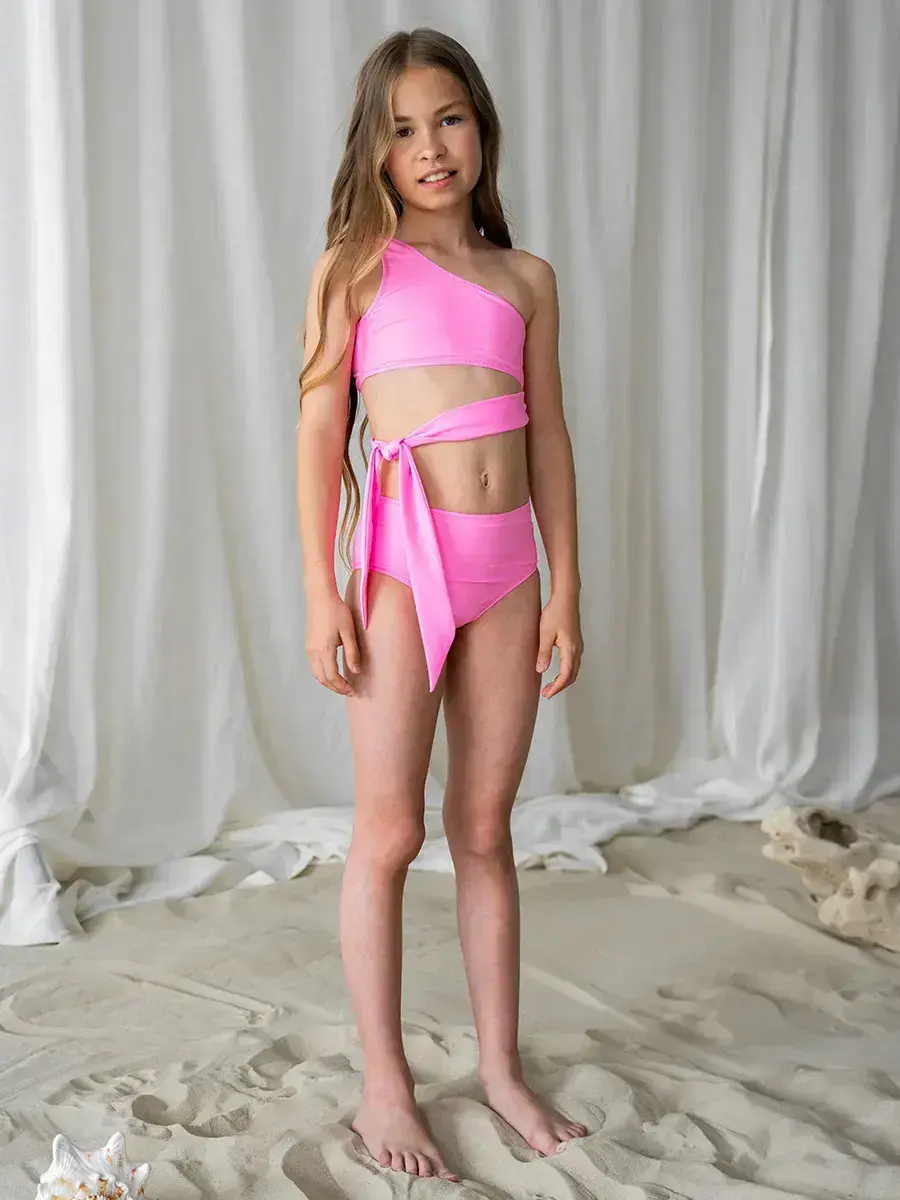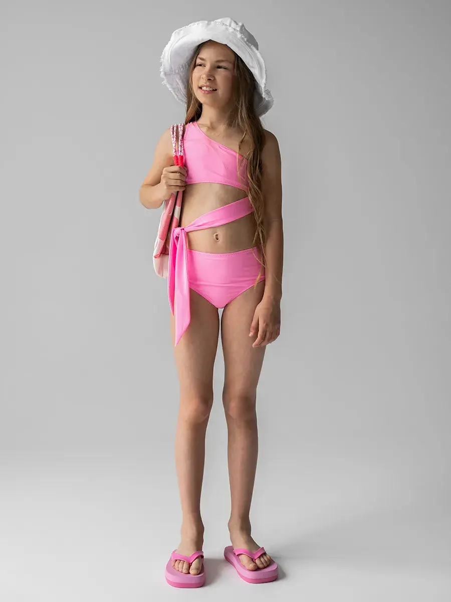 Этот розовый купальник для девочки подходит для различных водных активностей — плавания,