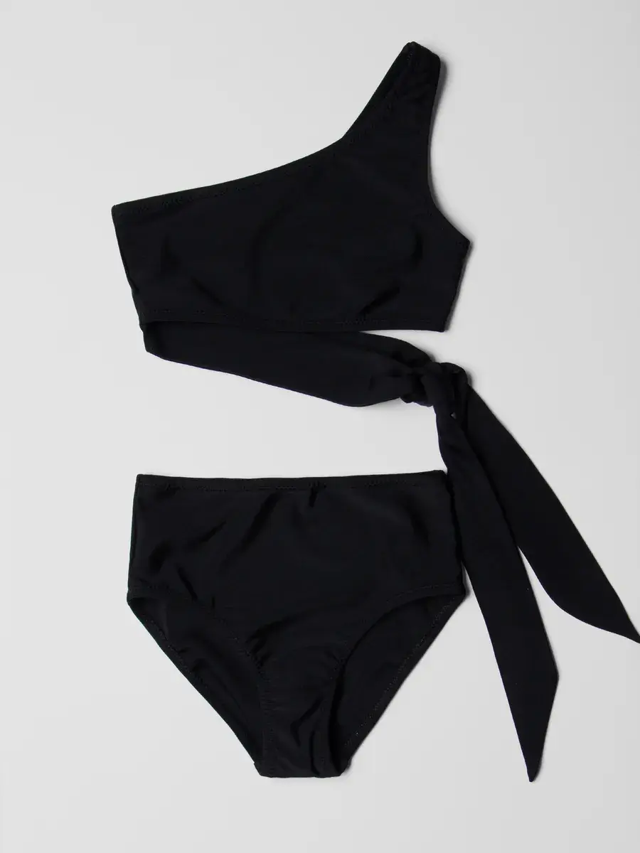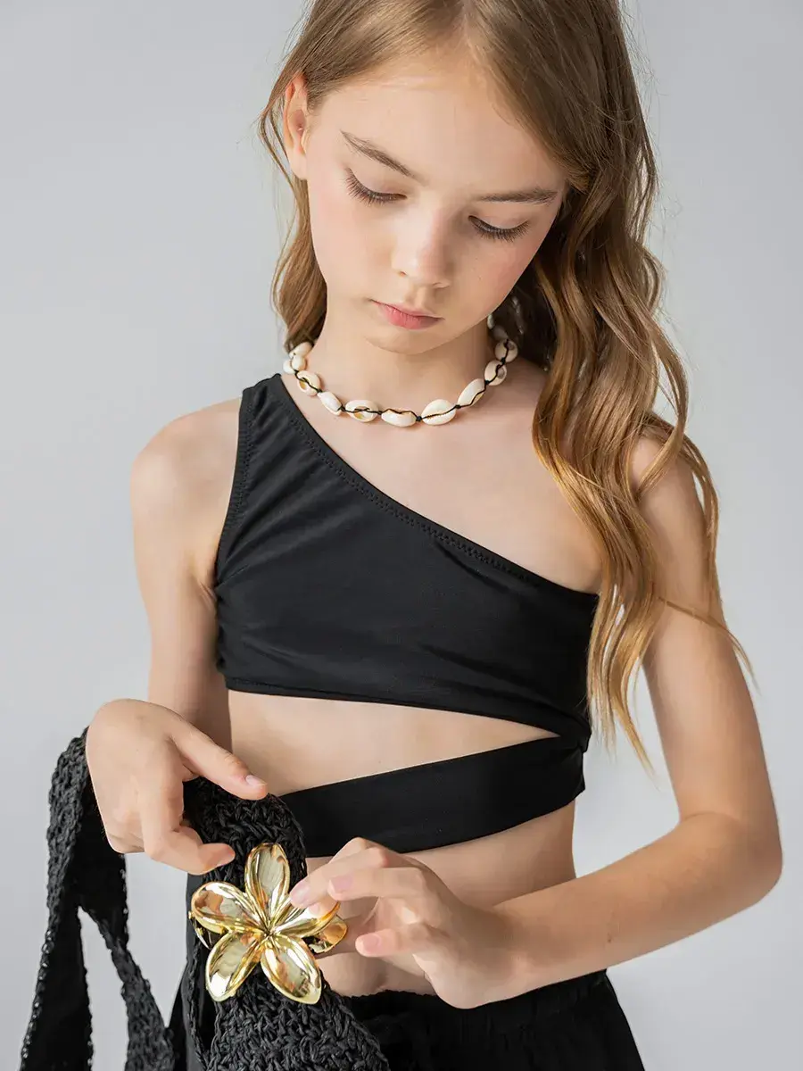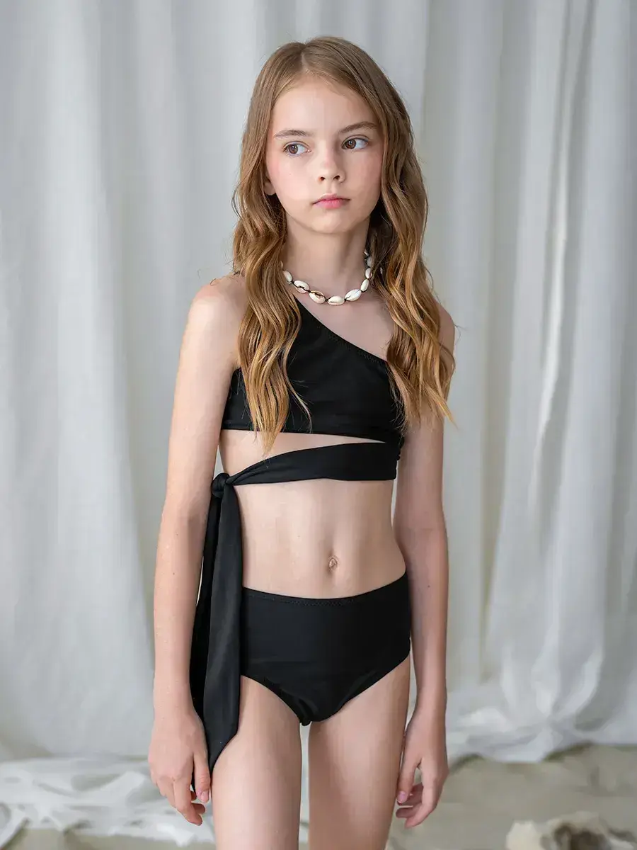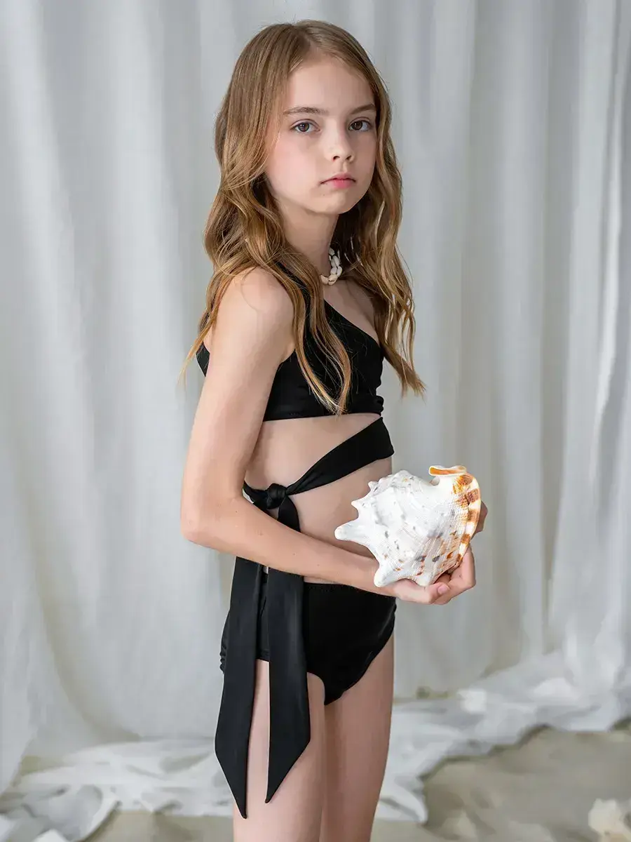Этот черный купальник для девочки подходит для различных водных активностей — плавания,