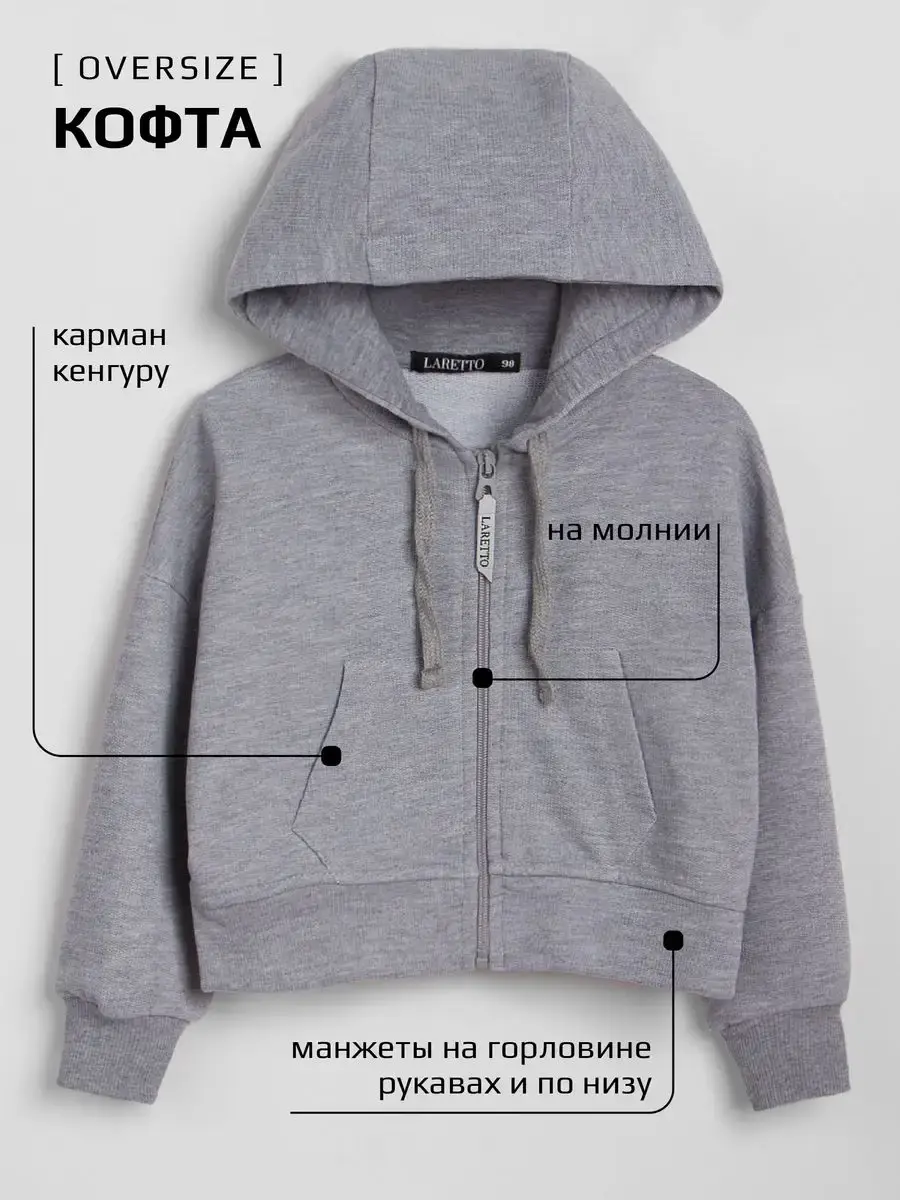Худи для девочек с капюшоном и молнией обеспечивает комфорт и защиту от непогоды, а детская футболка оверсайз из мягкого трикотажа дарит свободу движений и стильный вид.