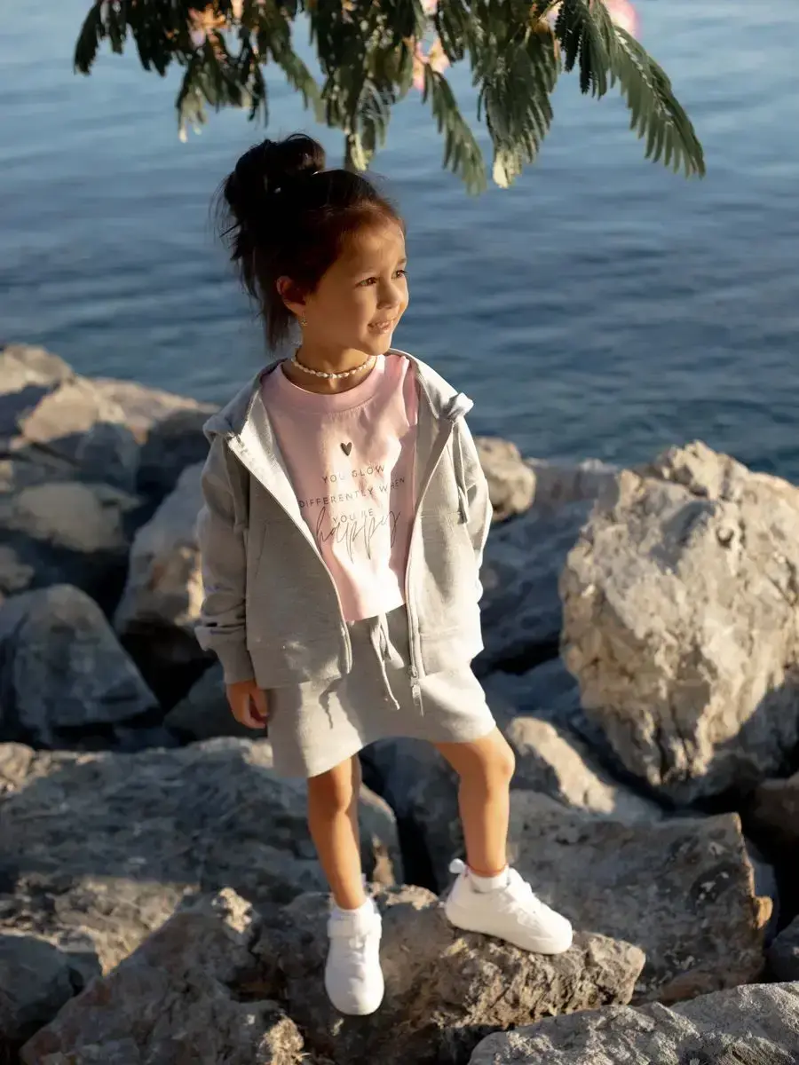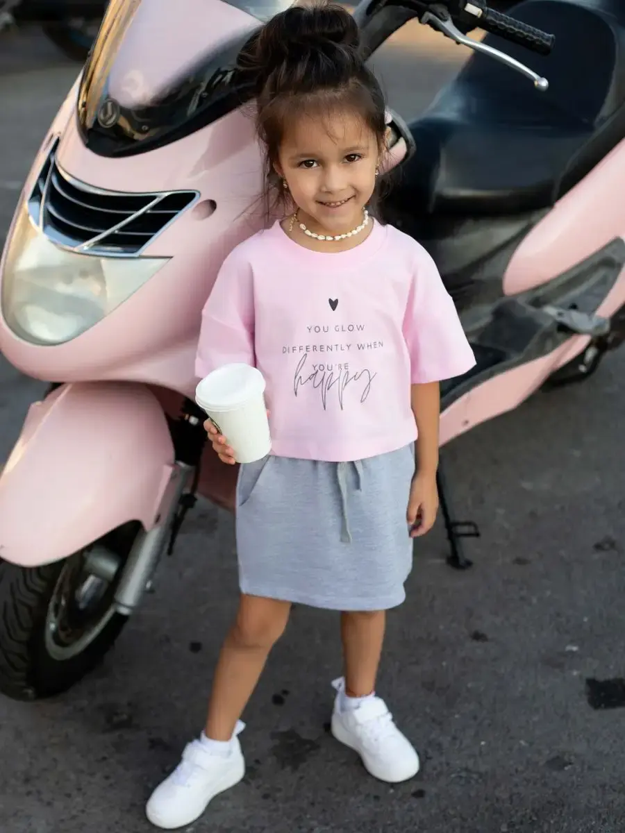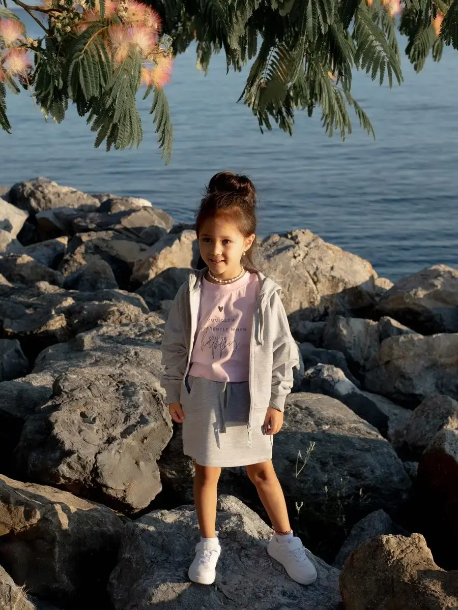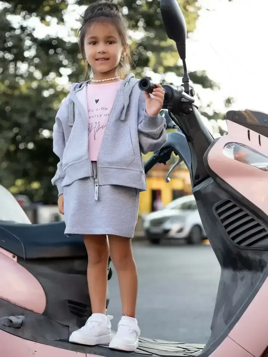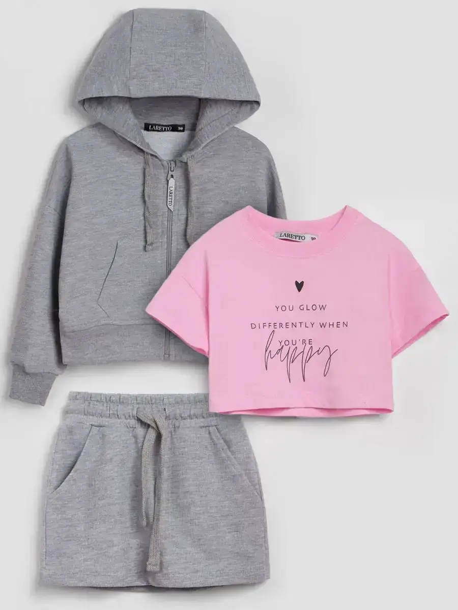 Представляем стильный детский спортивный костюм для девочки, который включает худи, футболку и юбку. Этот универсальный детский комплект идеально подходит как для малышей, так и для подростков.