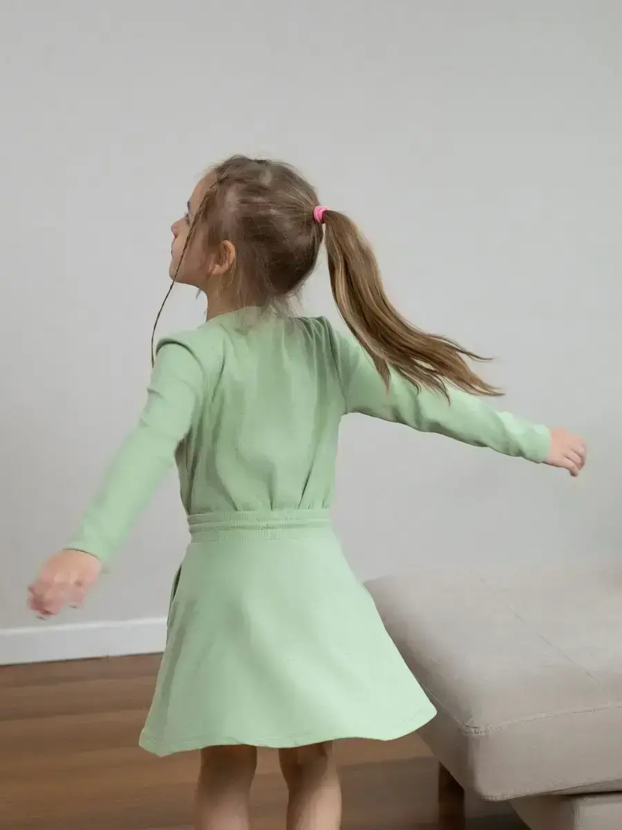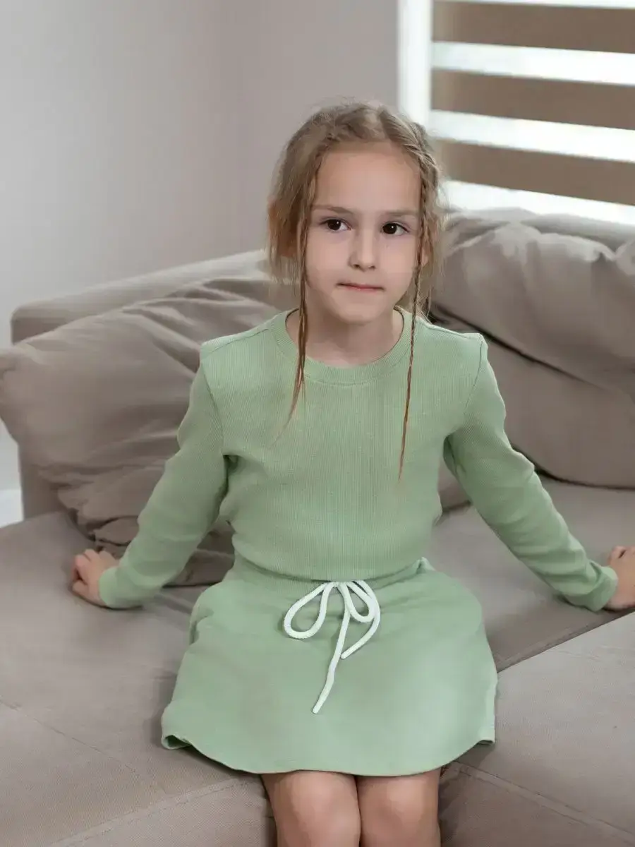 Спортивный костюм для девочек, который сочетает в себе стиль, комфорт и качество. Этот трикотажный детский костюм состоит из удобного лонгслива и модных брюк клеш, которые подарят вашей малышке свободу движений в прохладные осенние дни.