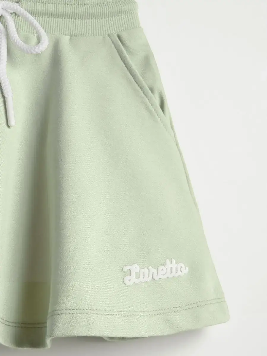 Юбка для девочки на резинке с завязками выполнены также из трикотажной ткани на основе натурального хлопка. Широкий пояс на резинке не сдавливает животик ребенка и обеспечивает надежную фиксацию на талии. Спортивная детская юбка придаёт образу оригинальность и следуют последним модным тенденциям.