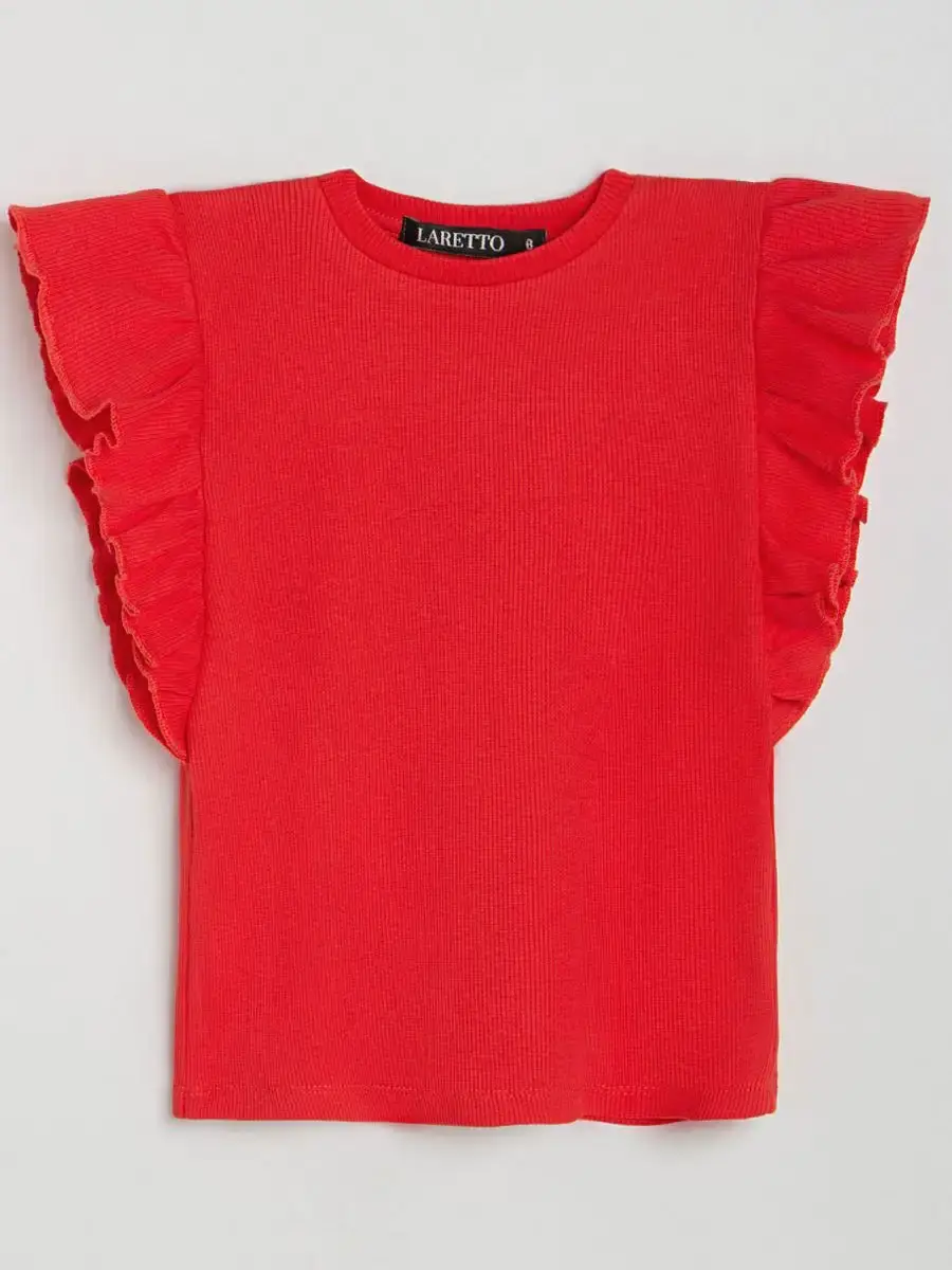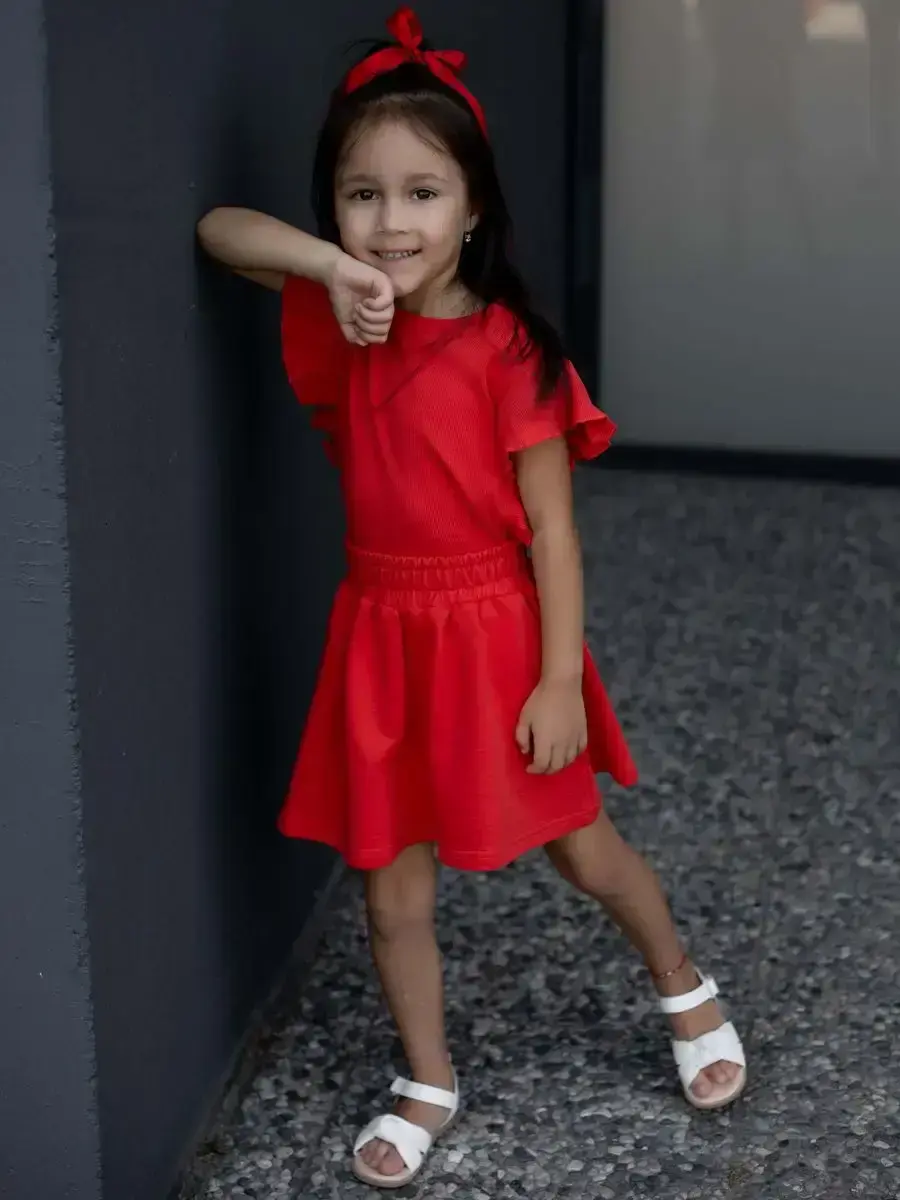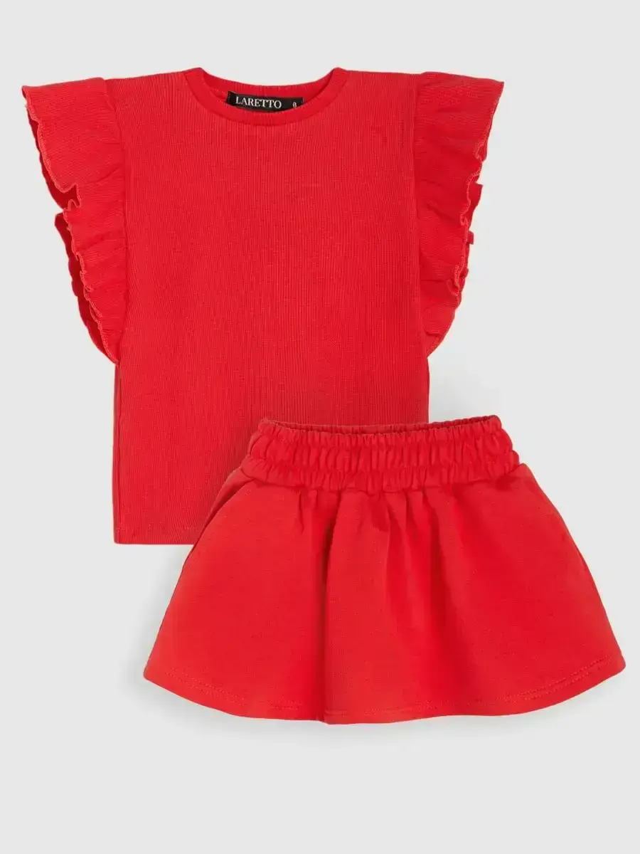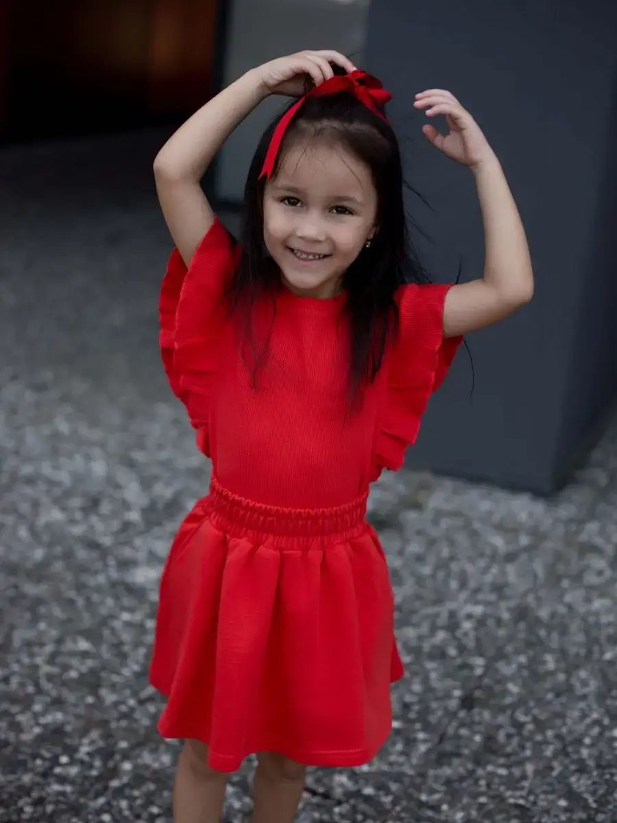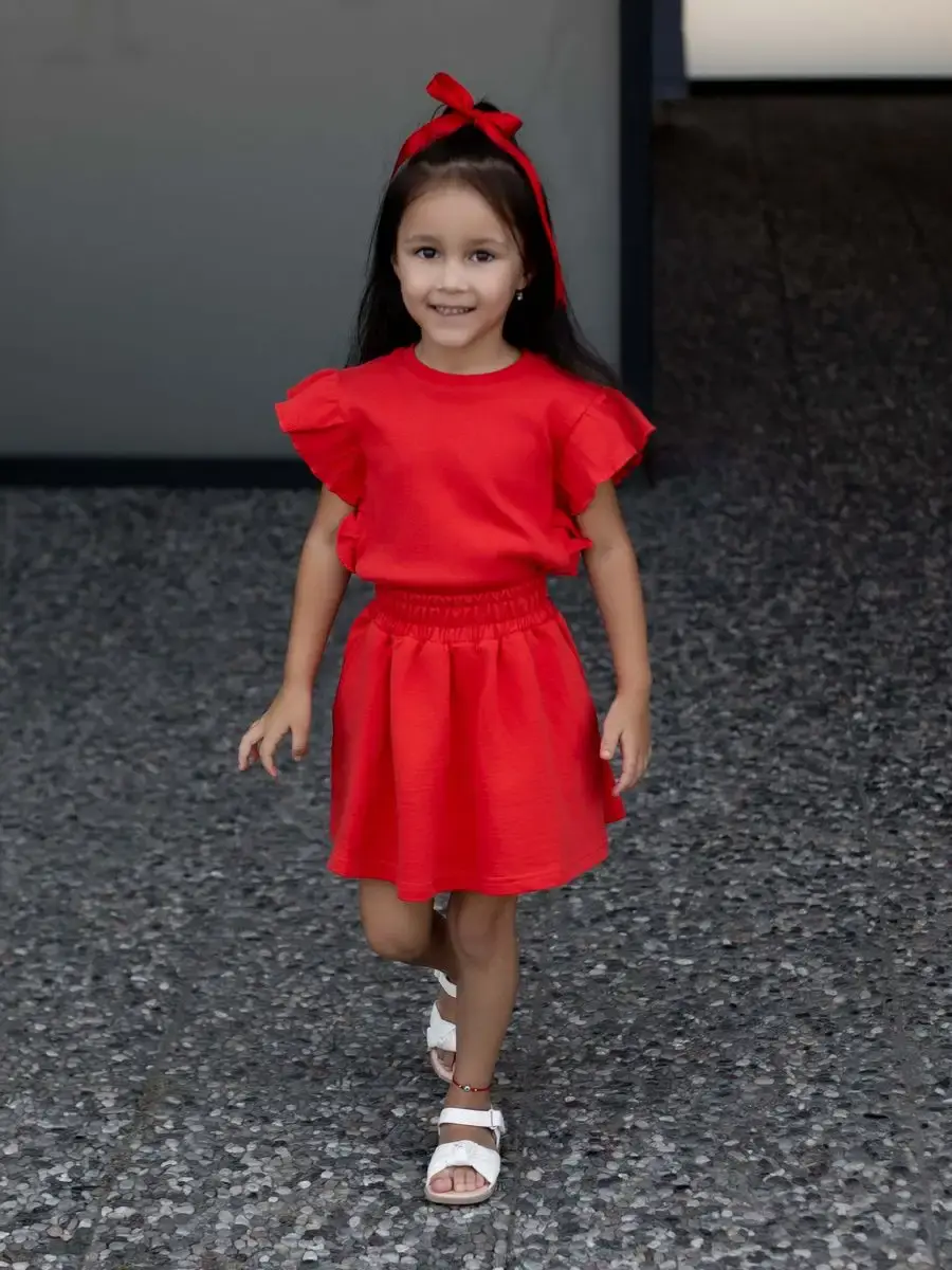 Костюм летний трикотажный непременно станет самым любимым в гардеробе каждой юной модницы! Майка детская в рубчик с рукавами рюшами и юбка мини выше колена - это подходящий вариант для садика, активного отдыха на природе, путешествий, похода в кино, гости или на праздник. Топик для девочки выполнен из нежнейшего трикотажа кашкорсе, невероятно мягкой и эластичной и ткани, которая практически не ощутима во время носки. Юбочка на резинке из футера хорошо сидит, держит форму и подчеркивают силуэт. Футболка хорошо сочетается с любым низом и верхом в одежде. Нарядный костюм идеален для праздничного торжества или фотосессии. Комплект не имеет застежек, поэтому Ваш ребенок сможет легко одеваться самостоятельно. Модель подойдет как малышкам, так и подросткам. Вся коллекция вещей для детей отшивается из натуральных, дышащих материалов Премиум качества и поэтом не вызывает раздражения и дискомфорта на коже. Не упустите возможность приобрести этот качественный товар уже сегодня! Он станет чудесным подарком дочке, сестре, внучке, племяннице без повода и на любое событие. Порадуйте своего ребенка красивой и стильной одеждой от российского бренда LARETTO. Приятных Вам покупок!