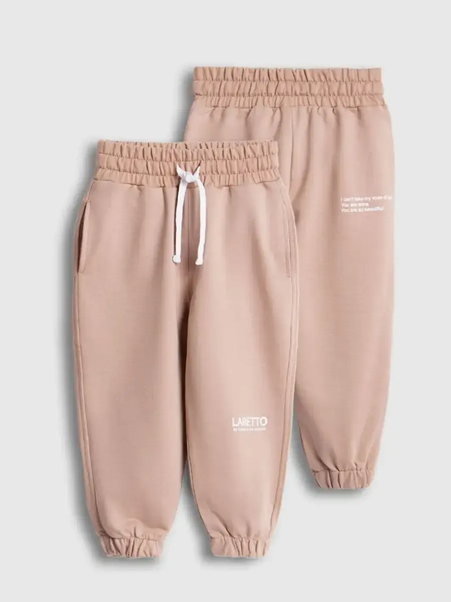 Брюки джоггеры для девочек - выполнены также из трикотажной ткани на основе натурального хлопка. Широкий пояс на резинке не сдавливает животик ребенка и обеспечивает надежную фиксацию на талии. Расширенные от бедра к низу придают образу оригинальность и следуют последним модным тенденциям.