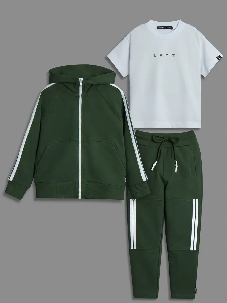 LRTT-477/00-0032718/Толстовка + брюки + футболка/Хаки