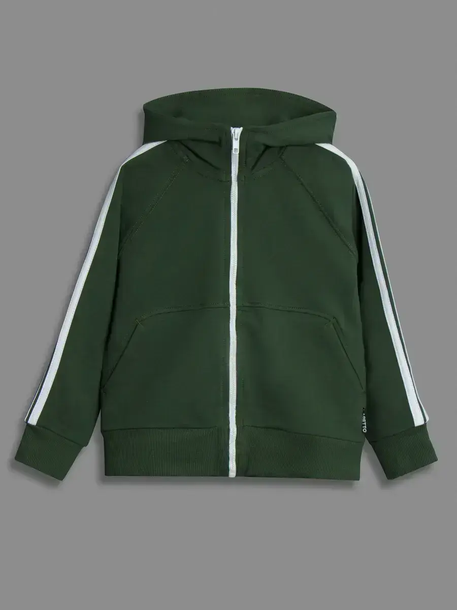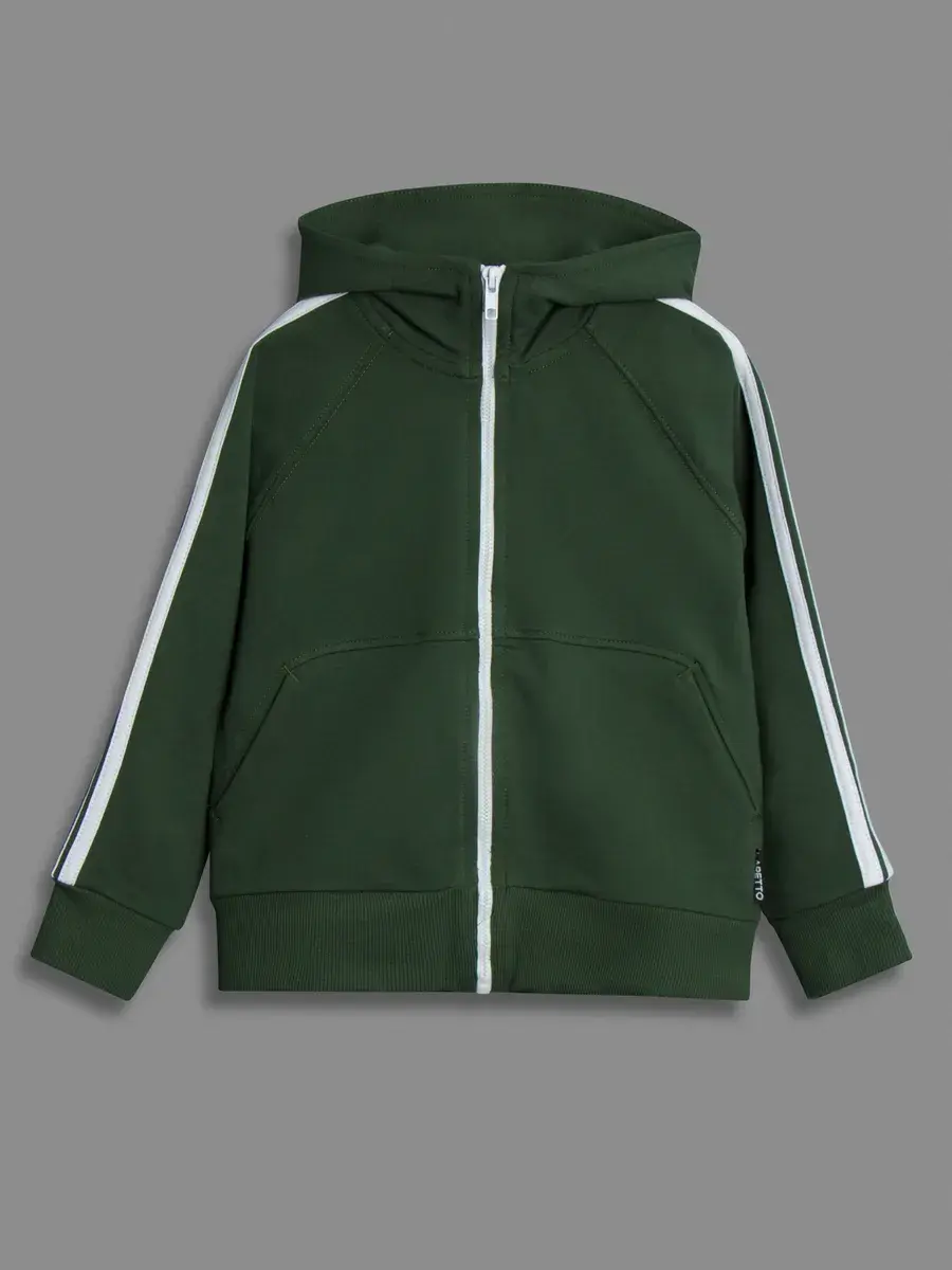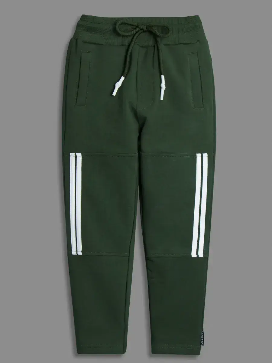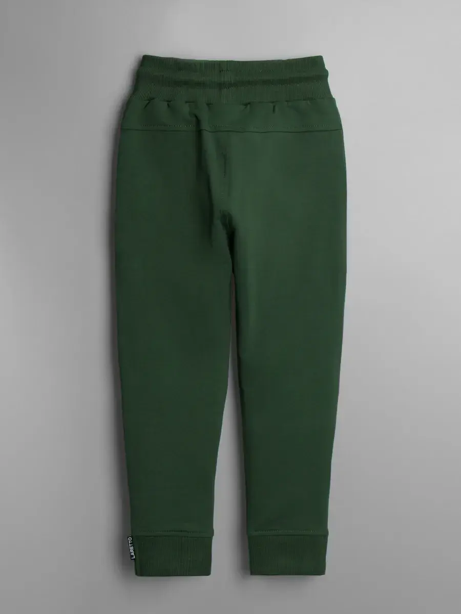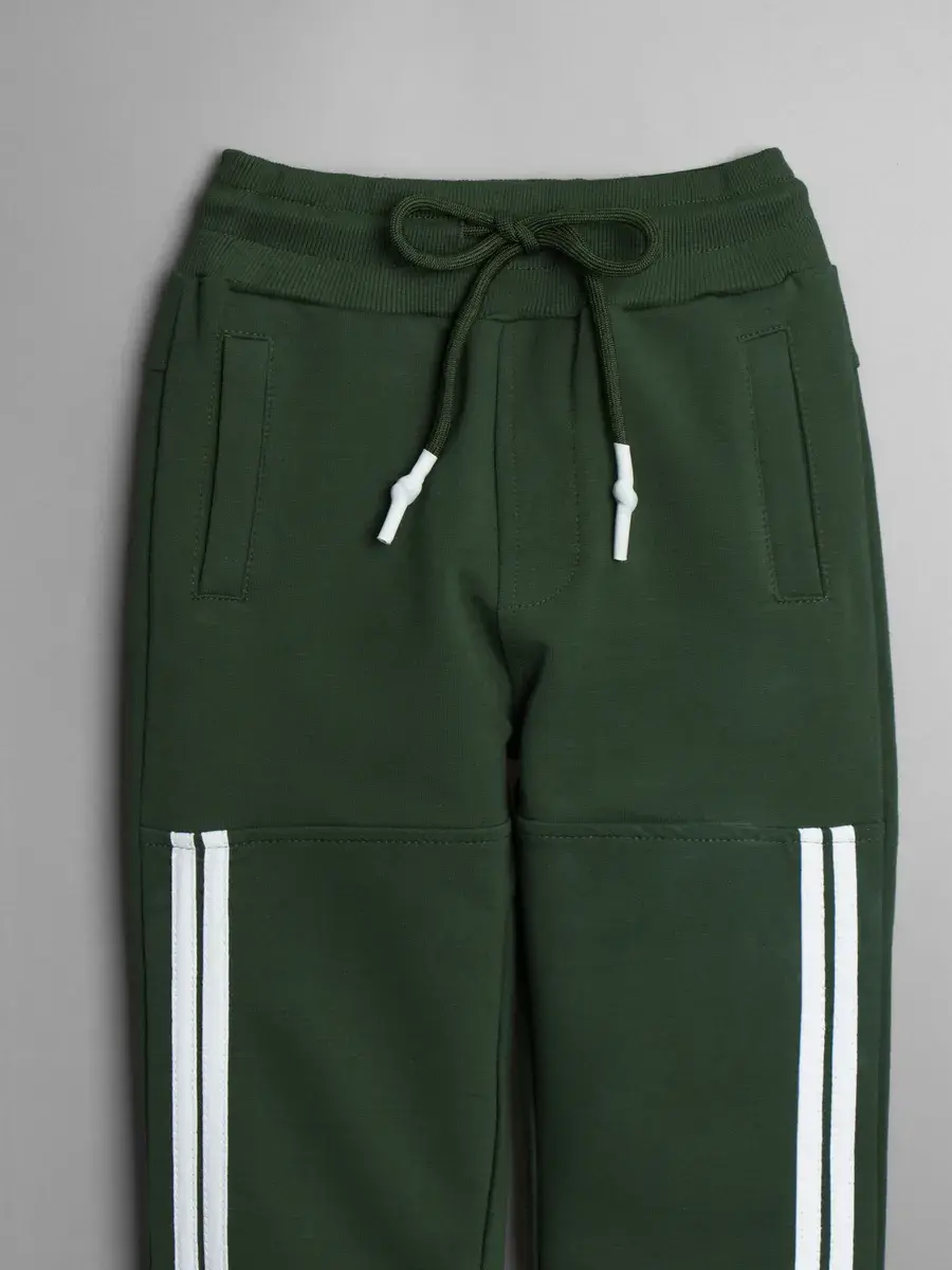 Спортивные штаны для мальчика со шнуровкой на поясе отлично сочетаются с кофтой и создают единый образ.