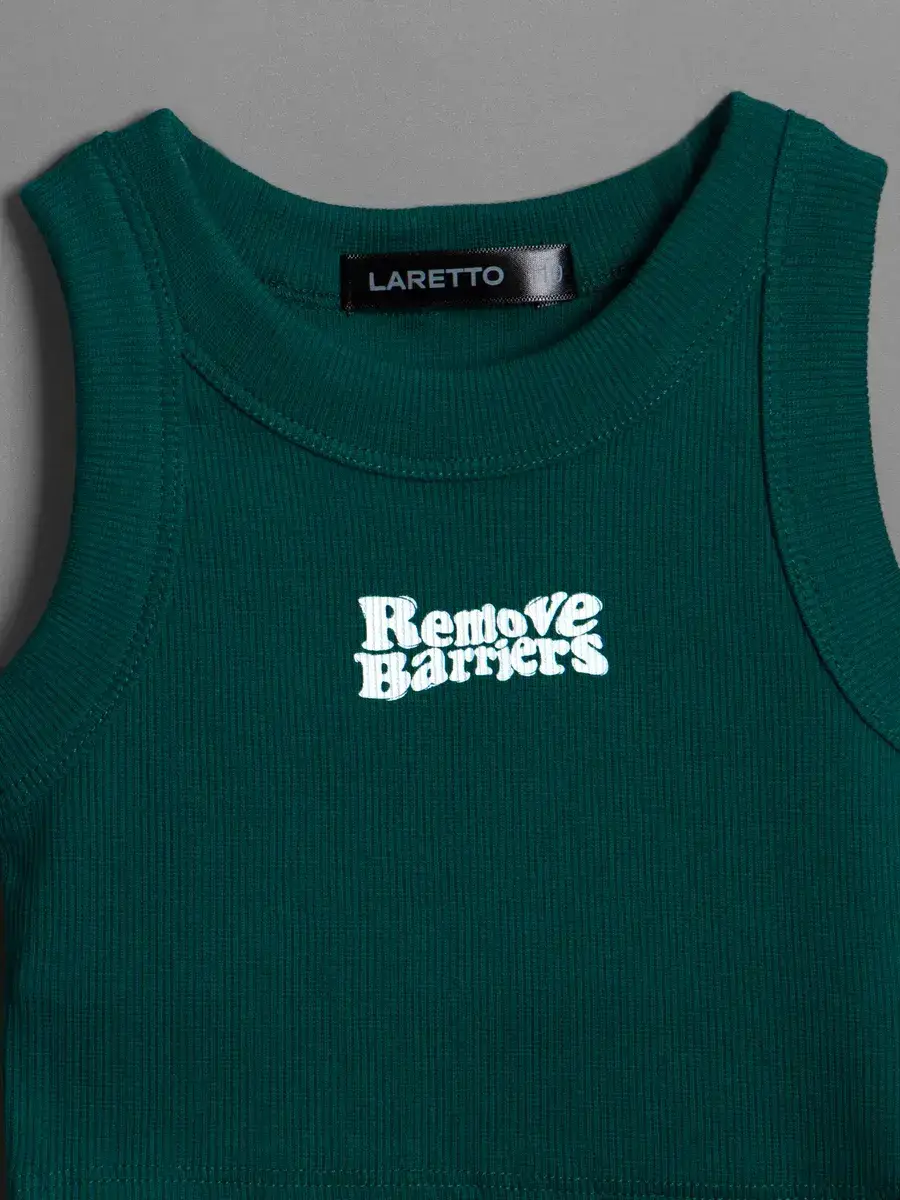 Мягкая ткань приятна на ощупь и позволяет коже дышать, что делает топ отличным выбором для летнего гардероба. Аккуратно обработанные швы на изделии не натирают и не вызывают раздражения, гипоаллергенный хлопок подходит для самых маленьких.