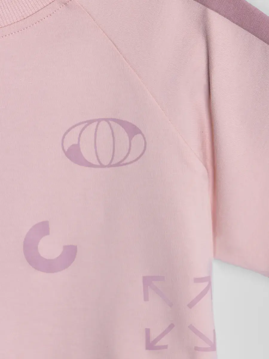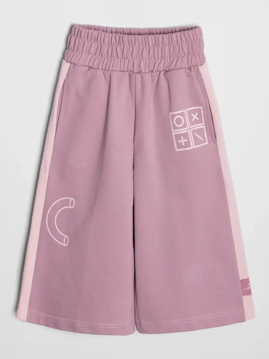 Пудровый костюм штаны и футболка для девочки - это стильный и комфортный комплект, который станет отличным выбором на каждый день. Укороченная футболка оверсайз и брюки кюлоты станут практичным вариантом для дома, отдыха, повседневной носки в садик, в школу и занятий спортом. Детская одежда с модным принтом выполнена из качественного хлопкового материала, который обеспечивает удобство, не стесняет движений и позволяет коже дышать.