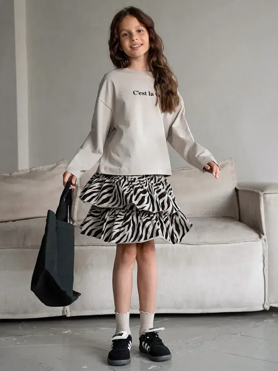 Представляем летний костюм для девочки, состоящий из стильного лонгслива и юбки! Этот детский комплект - идеальное решение не только для жаркого лета, но и для теплой осени. Легкий и дышащий лонгслив обеспечит комфорт в прохладные дни, а юбка добавит образу игривости и очарования. Наш летний костюм для девочки, включающий лонгслив и юбку, прекрасно подойдет для прогулок, игр на свежем воздухе и даже для особых случаев. Благодаря своему универсальному дизайну, этот комплект легко сочетается с другими элементами гардероба, позволяя создавать разнообразные образы. А когда придет осень, просто дополните наряд курткой или кардиганом, и ваша девочка будет чувствовать себя комфортно и стильно. Подарите своей маленькой принцессе возможность выглядеть модно и чувствовать себя уверенно в этом универсальном летнем костюме для девочки с лонгсливом и юбкой, который станет ее любимым нарядом даже осенью!