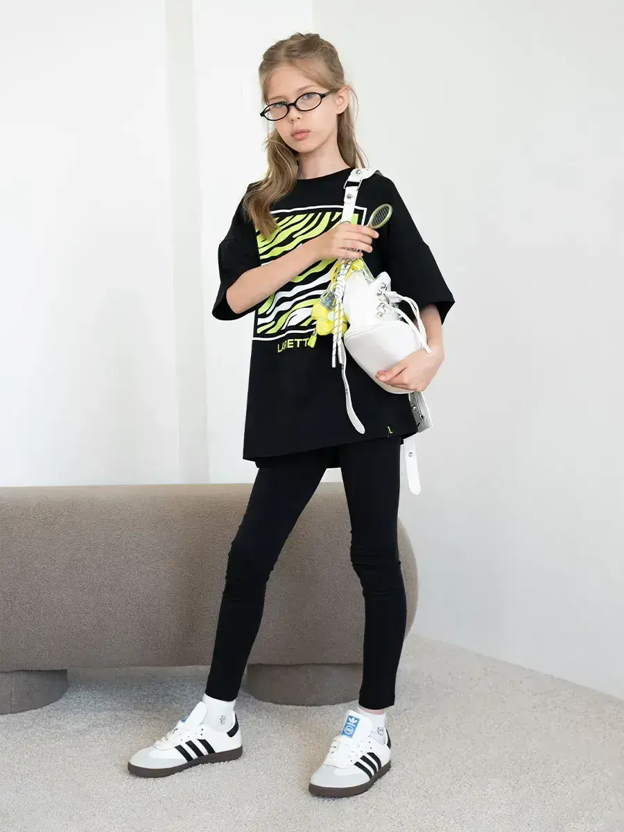 Представляем стильный и практичный костюм для девочки, идеально подходящий для теплого сезона. Этот летний костюм для девочки состоит из легкой хлопковой футболки и удобных леггинсов — отличное решение для активных прогулок, игр на свежем воздухе или занятий спортом. Костюм с футболкой и легинсами для девочек — универсальный выбор для повседневной носки, отдыха, а также как костюм для танцев или физкультуры.