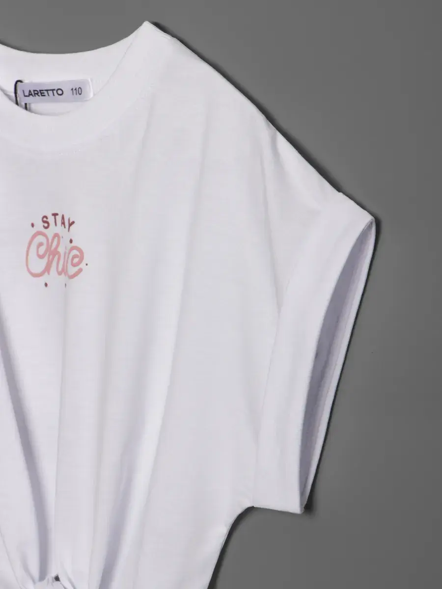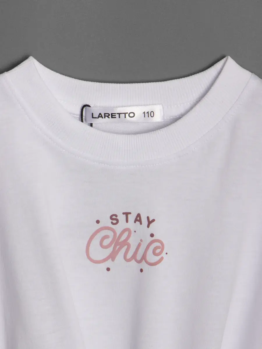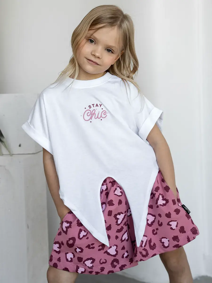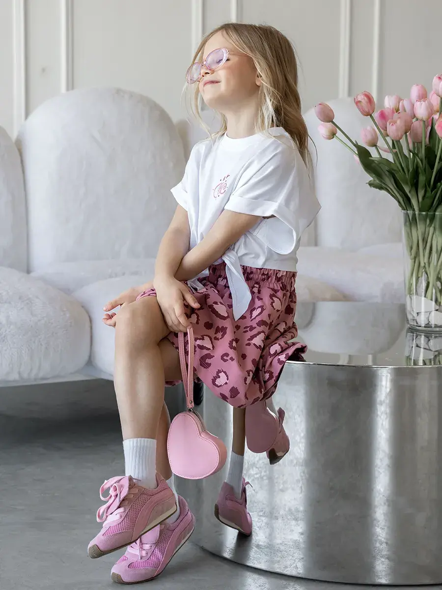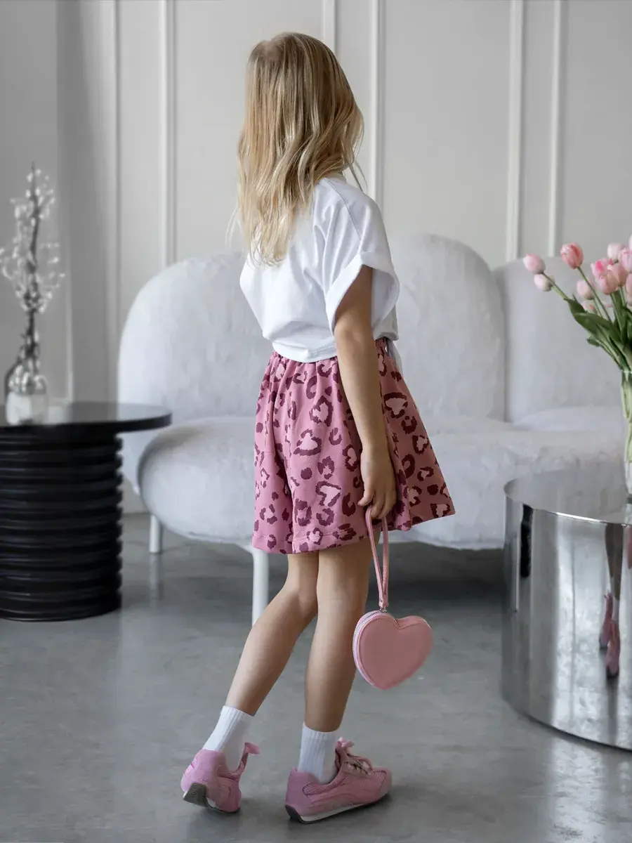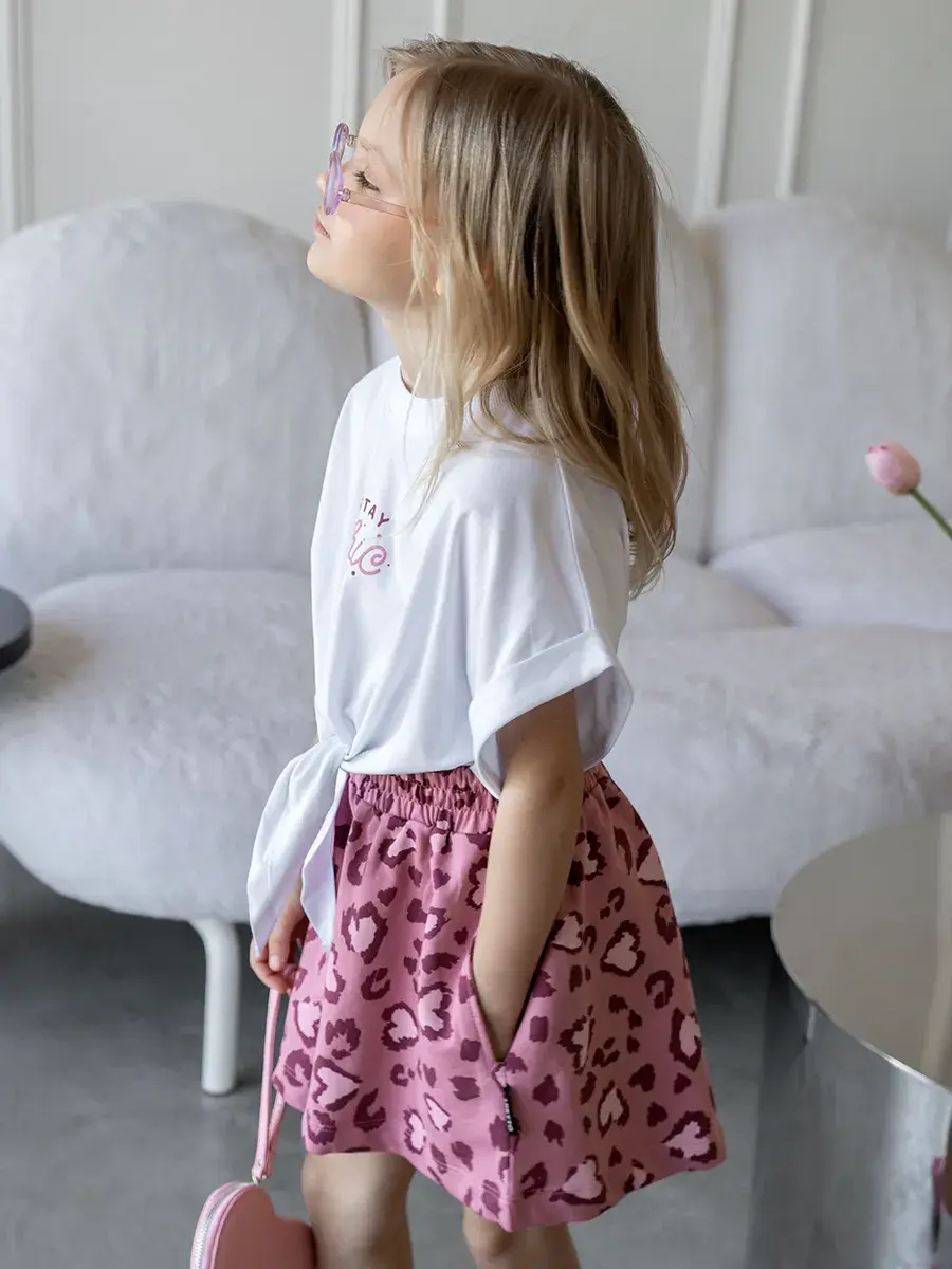 Костюм для девочек включает в себя модную футболку и комфортные шорты, которые подойдут как для активного отдыха, так и для повседневной носки. Идеально подходит для маленьких модниц и юных спортсменок.