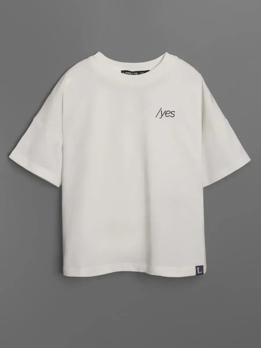 Футболка выполнена из хлопкового трикотажа, что делает ее мягкой и удобной для носки. Благодаря своей длине и oversize крою, она создаст модный повседневный образ.