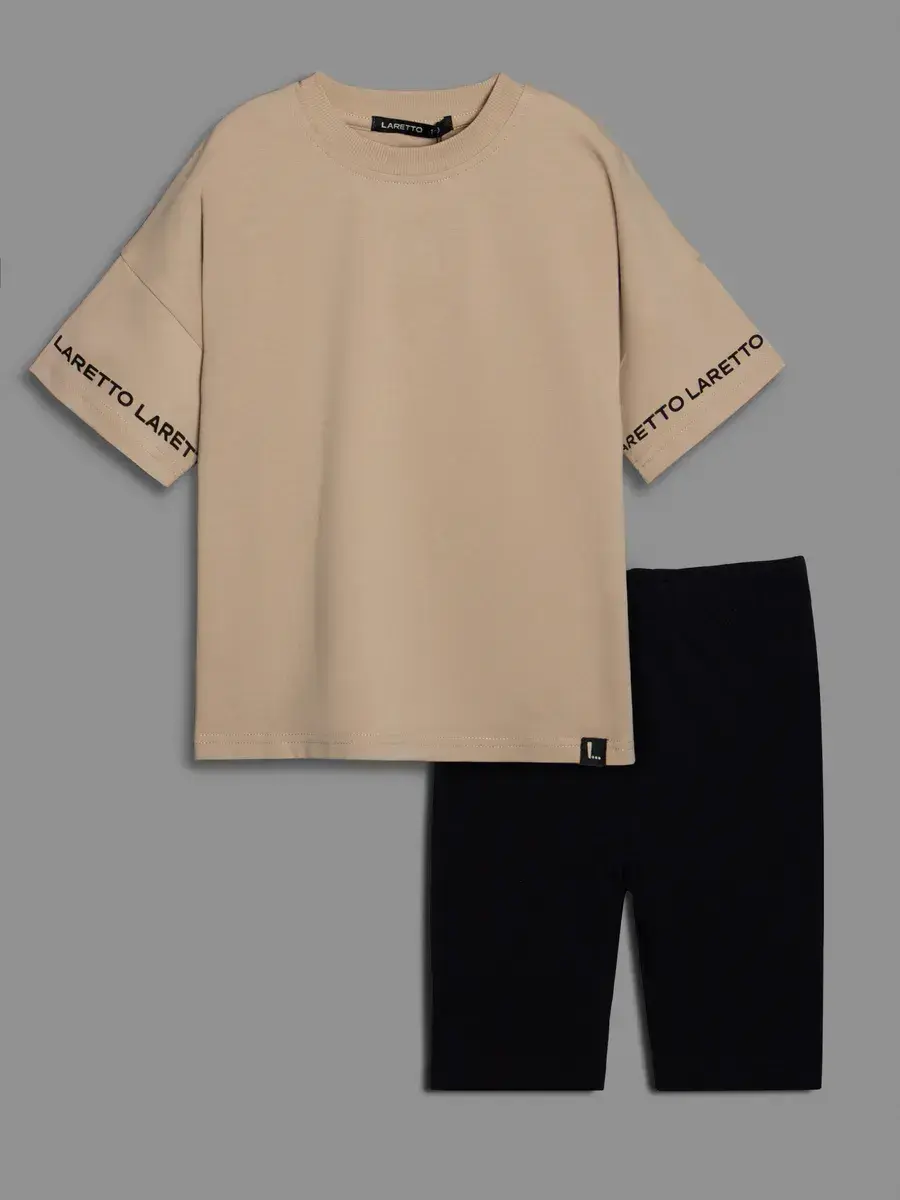 LRTT-608/00-0032414/Футболка + велосипедки/Бежевый