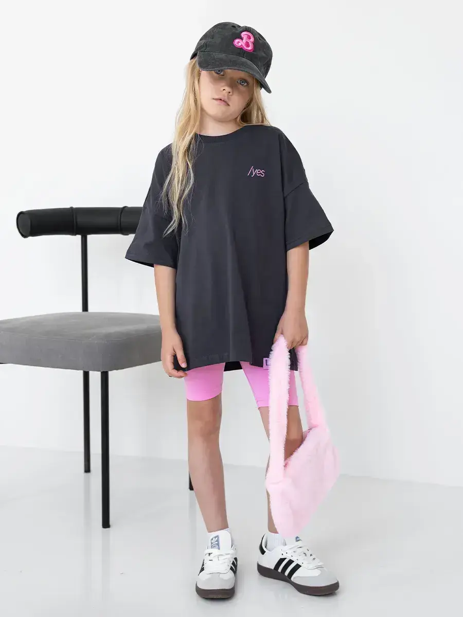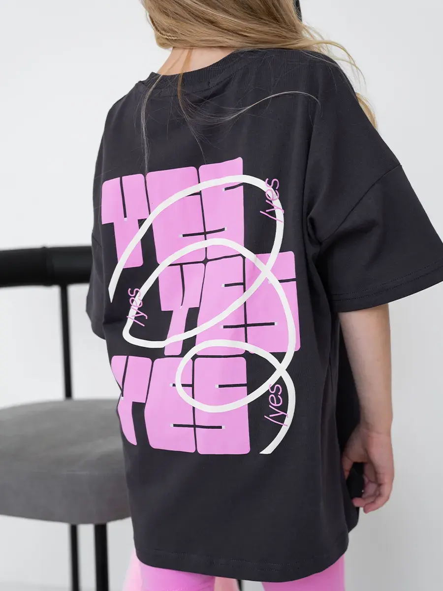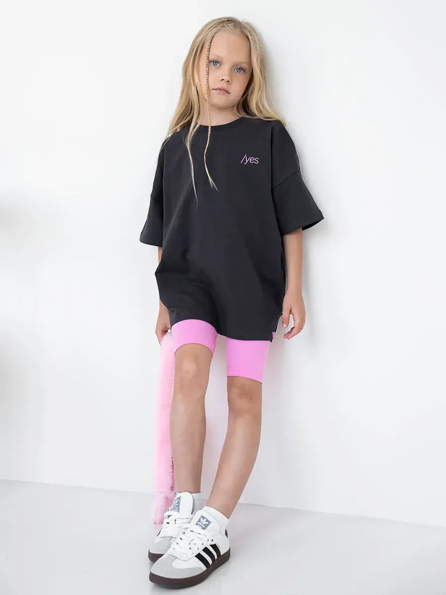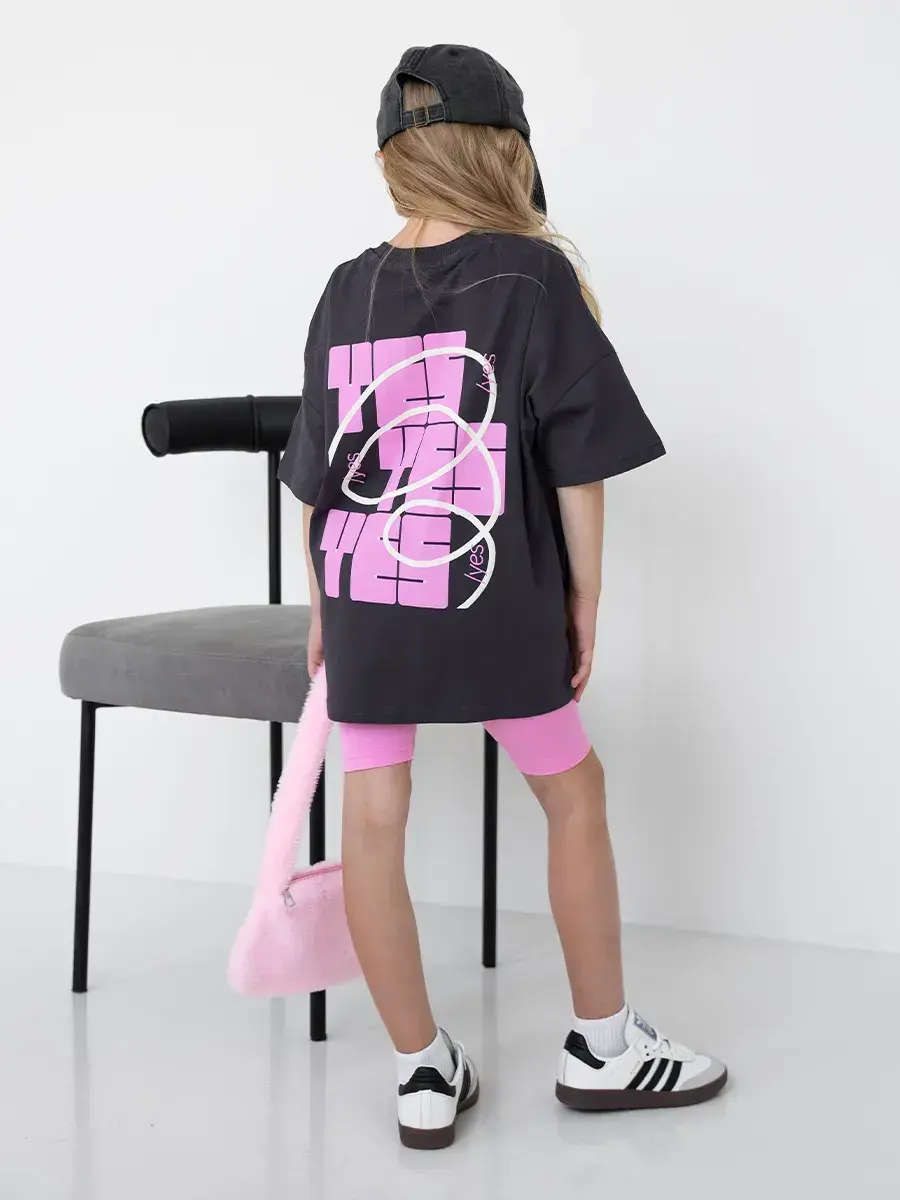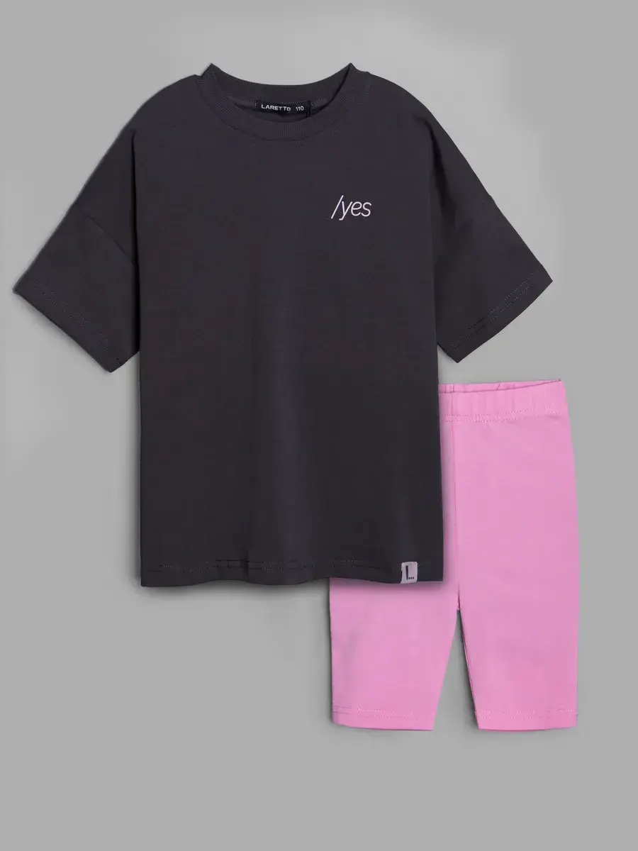 Детский костюм для девочки на лето включает в себя стильную футболку и велосипедки. Он идеально подойдет для летних прогулок или как домашний костюм для девочки подростка.
