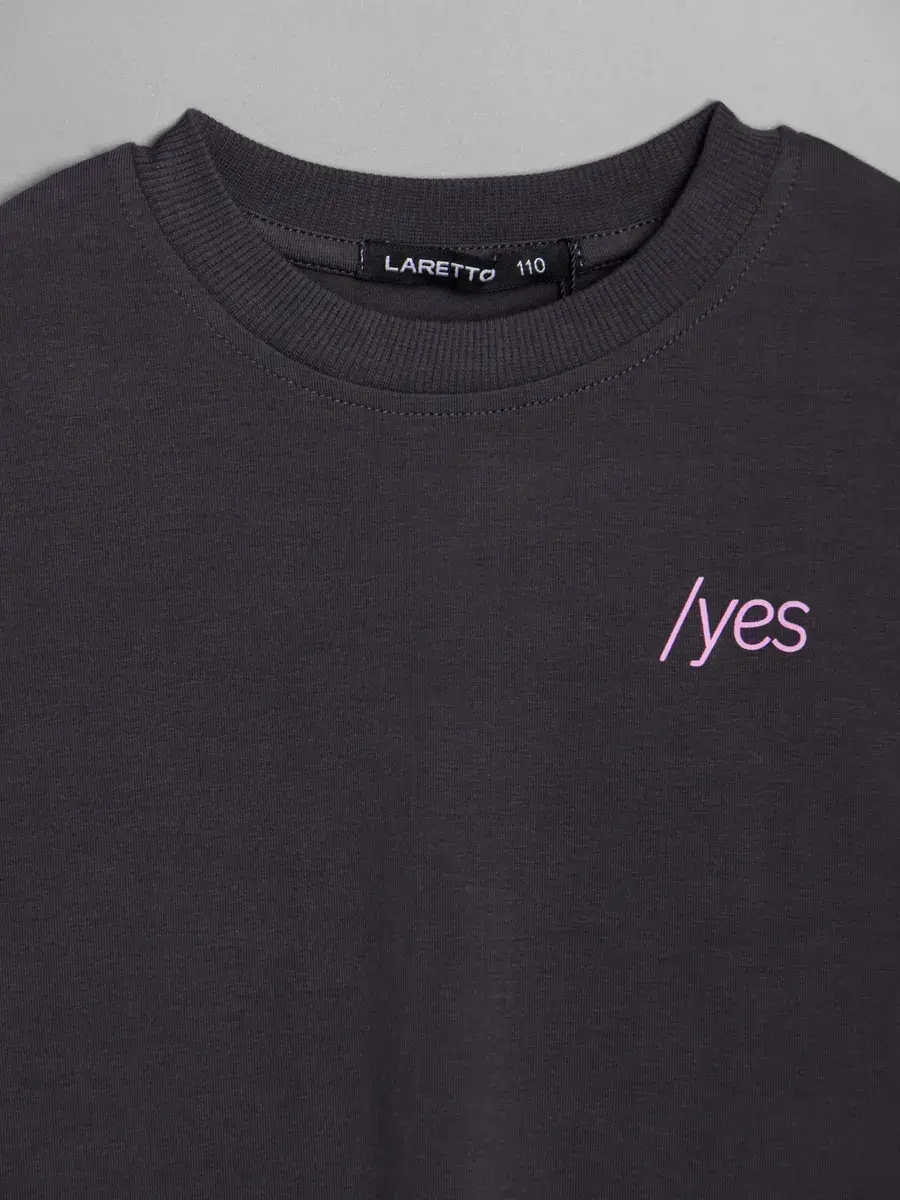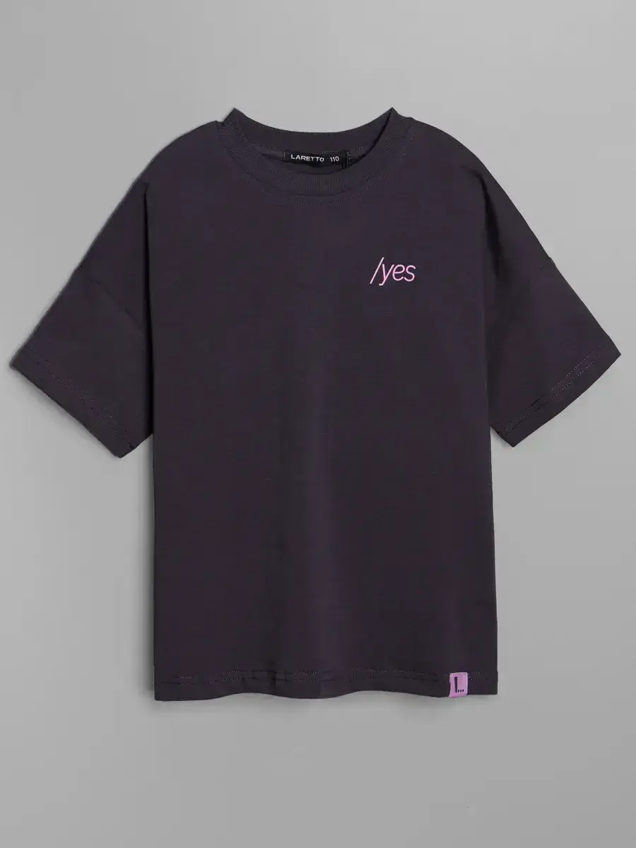 Футболка выполнена из хлопкового трикотажа, что делает ее мягкой и удобной для носки. Благодаря своей длине и oversize крою, она создаст модный повседневный образ.