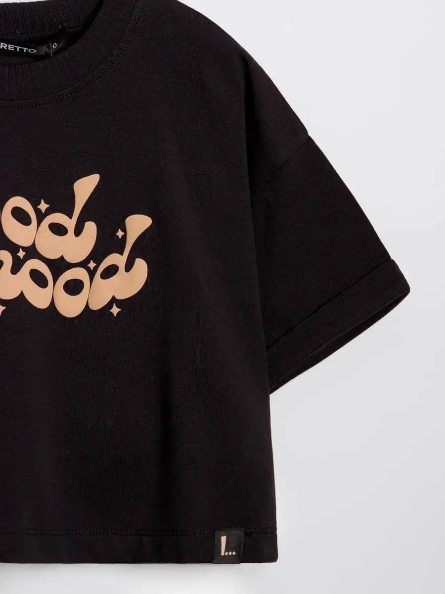 Юбка-шорты с эластичным поясом обеспечивает идеальную посадку и свободу движений, что позволяет девочке легко бегать и играть. Легкий и практичный материал идеально подходит для летних прогулок и активного отдыха. Этот костюм станет отличным выбором как для повседневной носки, так и для школьных мероприятий.