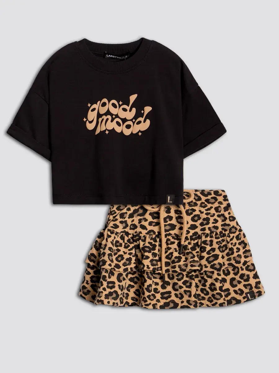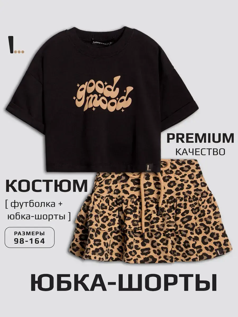 LRTT-343/00-0033745/Футболка + юбка-шорты/Леопардовый