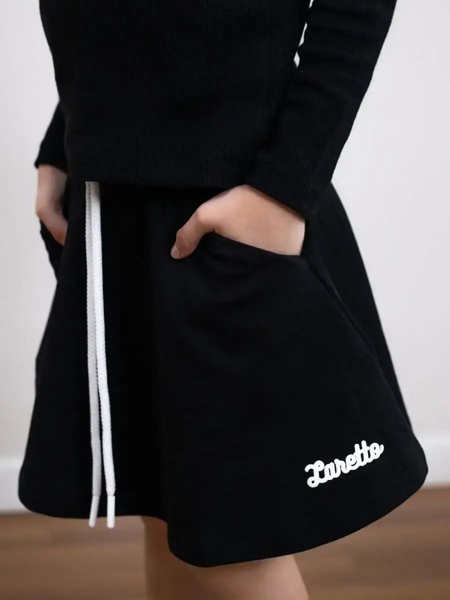Юбка для девочки на резинке с завязками выполнена также из трикотажной ткани на основе натурального хлопка. Широкий пояс на резинке не сдавливает животик ребенка и обеспечивает надежную фиксацию на талии. Спортивная детская юбка придаёт образу оригинальность и следуют последним модным тенденциям.