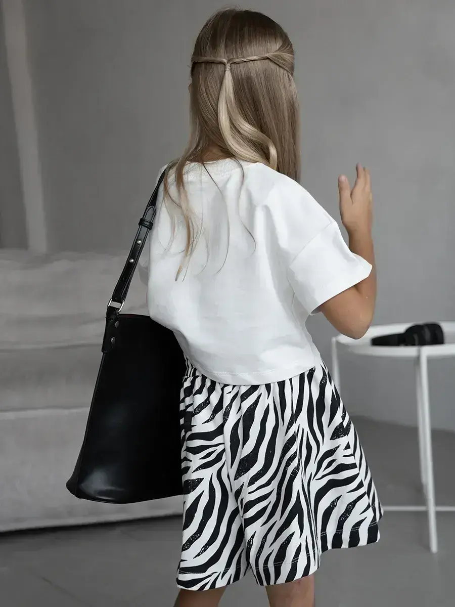 Набор шорты и футболка для девочки выполнены из натурального хлопка. Летний детский комплект обеспечивает легкость и воздухопроницаемость благодаря нежной трикотажной ткани. Модный и стильный костюм включает в себя удобные шорты и футболку с ярким принтом. Это отличный вариант для дома, садика, или пляжа.