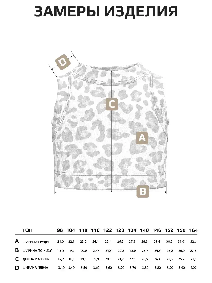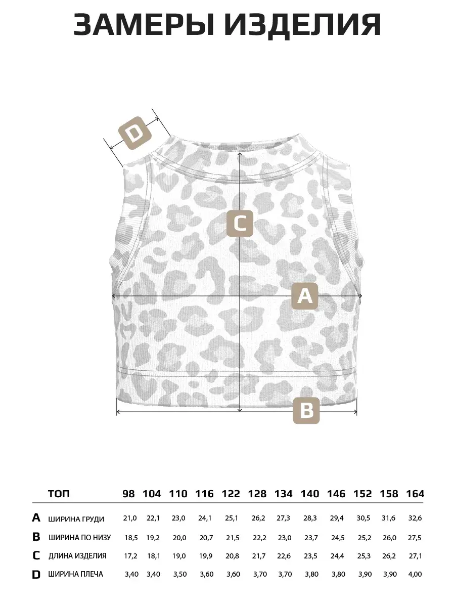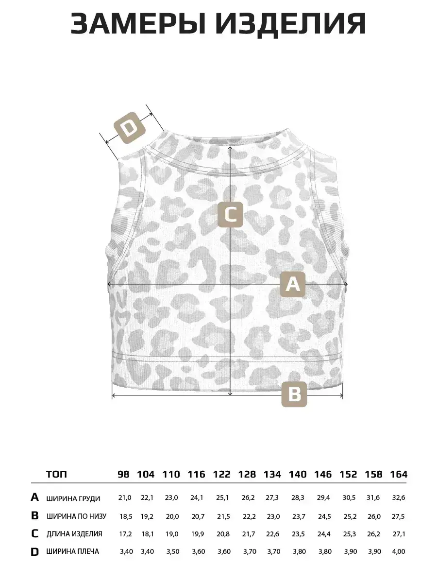 Представляем вашему вниманию наш великолепный леопардовый топ для девочек — идеальный выбор для стильных и активных юных леди! Этот трикотажный топ станет незаменимым элементом гардероба, добавляя яркие акценты в каждодневные образы. Вашему ребенку обязательно понравится этот модный и стильный леопардовый топ! Идеальный выбор для юных модниц, желающих быть в центре внимания.Леопардовый принт — это классика, которая никогда не выходит из моды. Топик для девочки подчеркнет её индивидуальность и стиль. Изготовлен из мягкого и дышащего трикотажа, этот топик обеспечивает комфорт в течение всего дня. Идеален для летних прогулок и активных игр!Доступен в размерах для детей и подростков, чтобы каждая девочка могла найти свой идеальный вариант. Этот топ отлично подходит как для повседневной носки, так и для особых случаев. Топ для девочек станет отличным дополнением к школьному гардеробу или летнему отдыху. Не стоит думать, что он не подойдёт для осени. В теплые осенние дни это идеальный вариант. Топики для девочек легко стираются и быстро сохнут, что делает их идеальными для активных детей. Топ леопардовый можно сочетать с юбками, шортами или джинсами, создавая разнообразные образы на каждый день. Заказывайте трикотажный топ детский леопардовый прямо сейчас! Позвольте вашей дочке чувствовать себя уверенно и стильно в этом замечательном топе. Пусть каждый день будет полон ярких впечатлений!