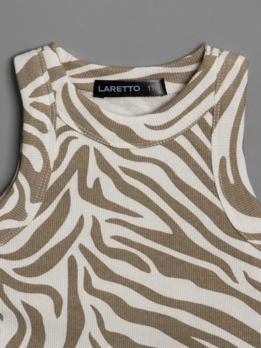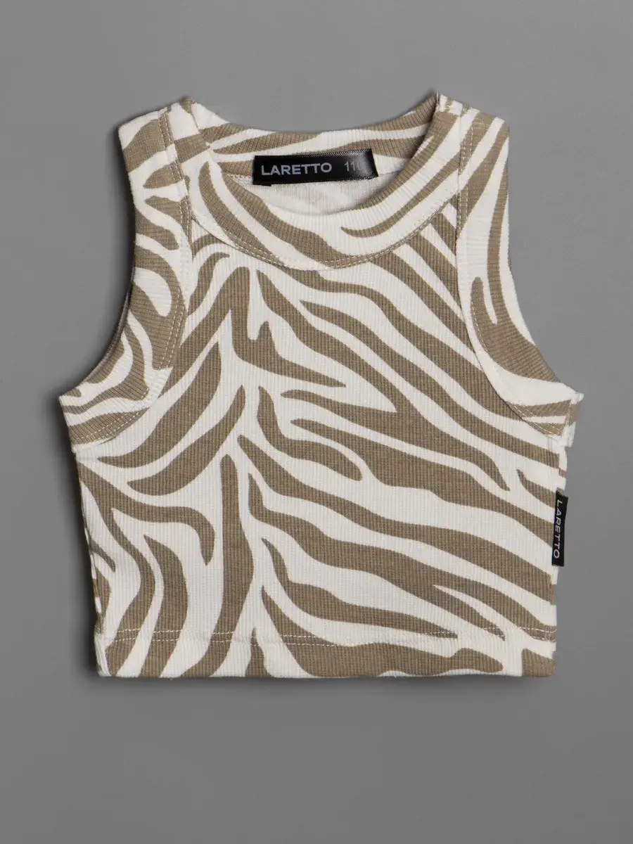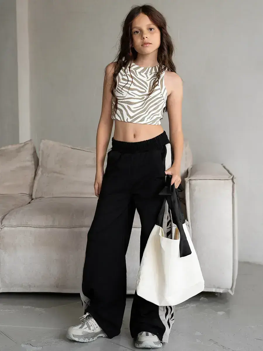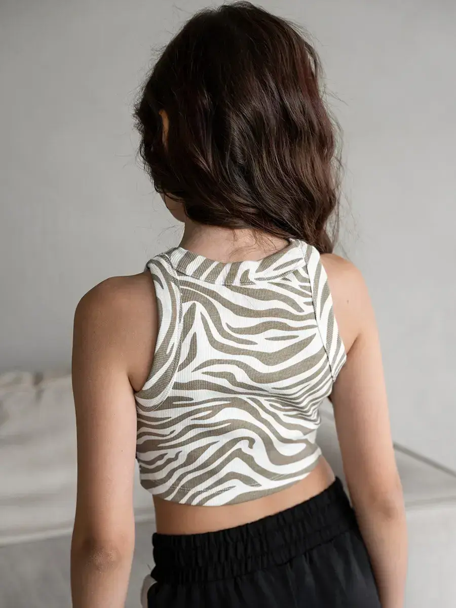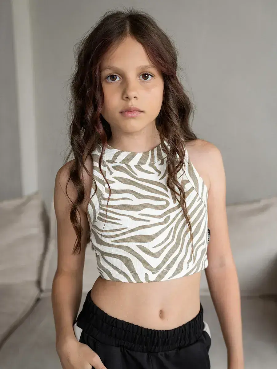Этот стильный и универсальный детский топ станет идеальным дополнением к гардеробу любой маленькой модницы. Благодаря базовому цвету и трикотажному материалу, он сочетает в себе как модные, так и комфортные элементы. Яркий животный принт делает этот топ уникальным. Он отлично сочетает стиль y2k и комфорт, что делает его идеальным выбором для летнего сезона.