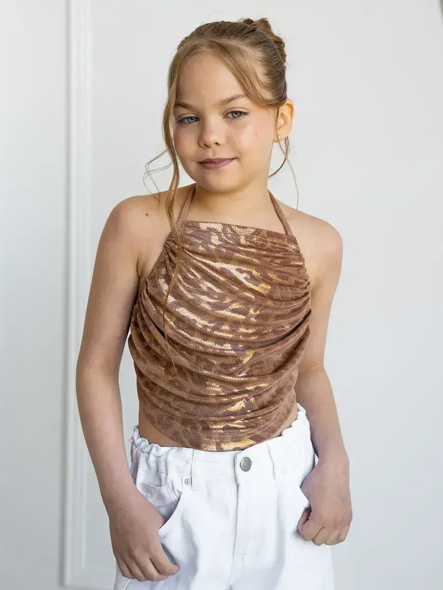 Летний топ для девочки — идеальный выбор для жарких дней! Этот стильный топ с завязками и открытой спиной станет настоящим хитом в гардеробе вашей маленькой модницы. Изготовленный из легкого и дышащего материала, он обеспечивает комфорт и свободу движений, позволяя наслаждаться летними приключениями. Элегантная драпировка добавляет изюминку, подчеркивая нежность и игривость образа. Такой топ отлично сочетается как с юбками, так и с шортами, создавая множество стильных комбинаций для прогулок, пикников или семейных мероприятий. Пляжный топ для девочки также отлично подойдет для времяпрепровождения на берегу, не стесняя движения во время активных игр вашей дочки! Доступен в различных ярких цветах, он станет ярким акцентом в любом наряде. Позвольте вашей девочке выделиться и чувствовать себя уверенно в этом модном летнем топе! Не упустите возможность добавить этот must-have в ее коллекцию одежды!