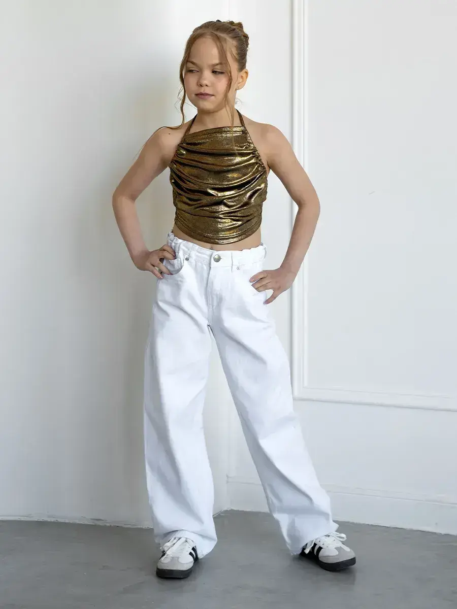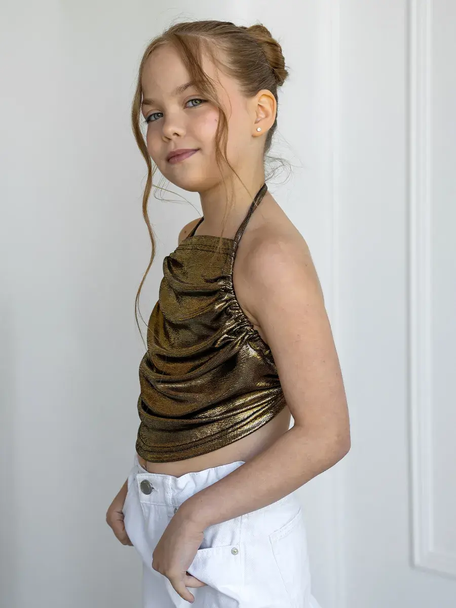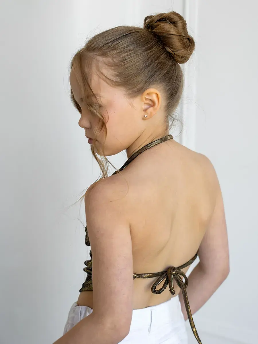 Летний топ для девочки — идеальный выбор для жарких дней! Этот стильный топ с завязками и открытой спиной станет настоящим хитом в гардеробе вашей маленькой модницы. Изготовленный из легкого и дышащего материала, он обеспечивает комфорт и свободу движений, позволяя наслаждаться летними приключениями. Элегантная драпировка добавляет изюминку, подчеркивая нежность и игривость образа. Такой топ отлично сочетается как с юбками, так и с шортами, создавая множество стильных комбинаций для прогулок, пикников или семейных мероприятий. Пляжный топ для девочки также отлично подойдет для времяпрепровождения на берегу, не стесняя движения во время активных игр вашей дочки! Доступен в различных ярких цветах, он станет ярким акцентом в любом наряде. Позвольте вашей девочке выделиться и чувствовать себя уверенно в этом модном летнем топе! Не упустите возможность добавить этот must-have в ее коллекцию одежды!