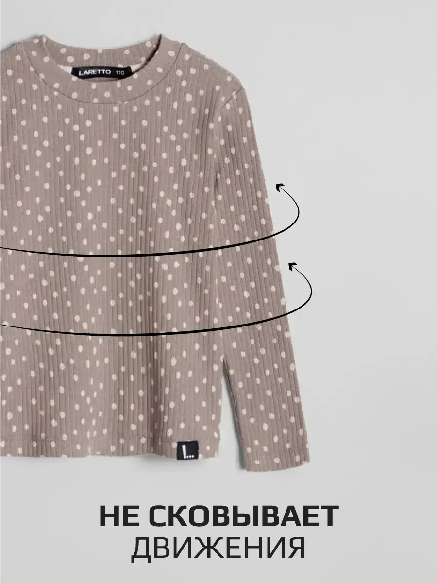 Лонгслив для девочки от бренда LARETTO станет незаменимым атрибутом в гардеробе каждой модницы! Модные леопардовые принты, в стиле зебра и в горошек никого не оставят равнодушными. Модная одежда для детей выполнена из премиального трикотажа в рубчик (кашкорсе риб 5*2), который обеспечивает максимальный комфорт, удобную посадку и эластичность, не ограничивая движения вашего ребенка. Лонгслив отлично подойдёт для весны.