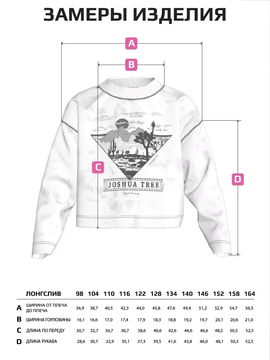 Лонгслив для детей – идеальный выбор для стильных и активных девочек и подростков. Этот демисезонный лонгслив прекрасно подойдет для прогулок в осеннюю погоду и занятий спортом. Лонгслив с принтом и окрасом ткани в виде варенки сделает вашу девочку самой модной и оригинальной. Изготовленный из высококачественного трикотажа и 100% хлопка, он обеспечивает максимальный комфорт и свободу движений. Мягкая ткань приятна к телу и не вызывает раздражения, что особенно важно для нежной детской кожи. Лонгслив имеет модный дизайн с ярким принтом, который добавит оригинальности и выразительности в любой образ. Он отлично сочетается с джинсами, леггинсами или юбками, создавая стильные комплекты для школы, прогулок или активного отдыха. Длинные рукава обеспечивают дополнительную защиту от прохлады, делая эту кофту идеальной для межсезонья. Выбирая наш лонгслив для девочек, вы получаете не только удобную и практичную одежду, но и стильный элемент гардероба, который порадует любую юную модницу. Позаботьтесь о комфорте и стиле вашего ребенка с нашим качественным трикотажным лонгсливом.