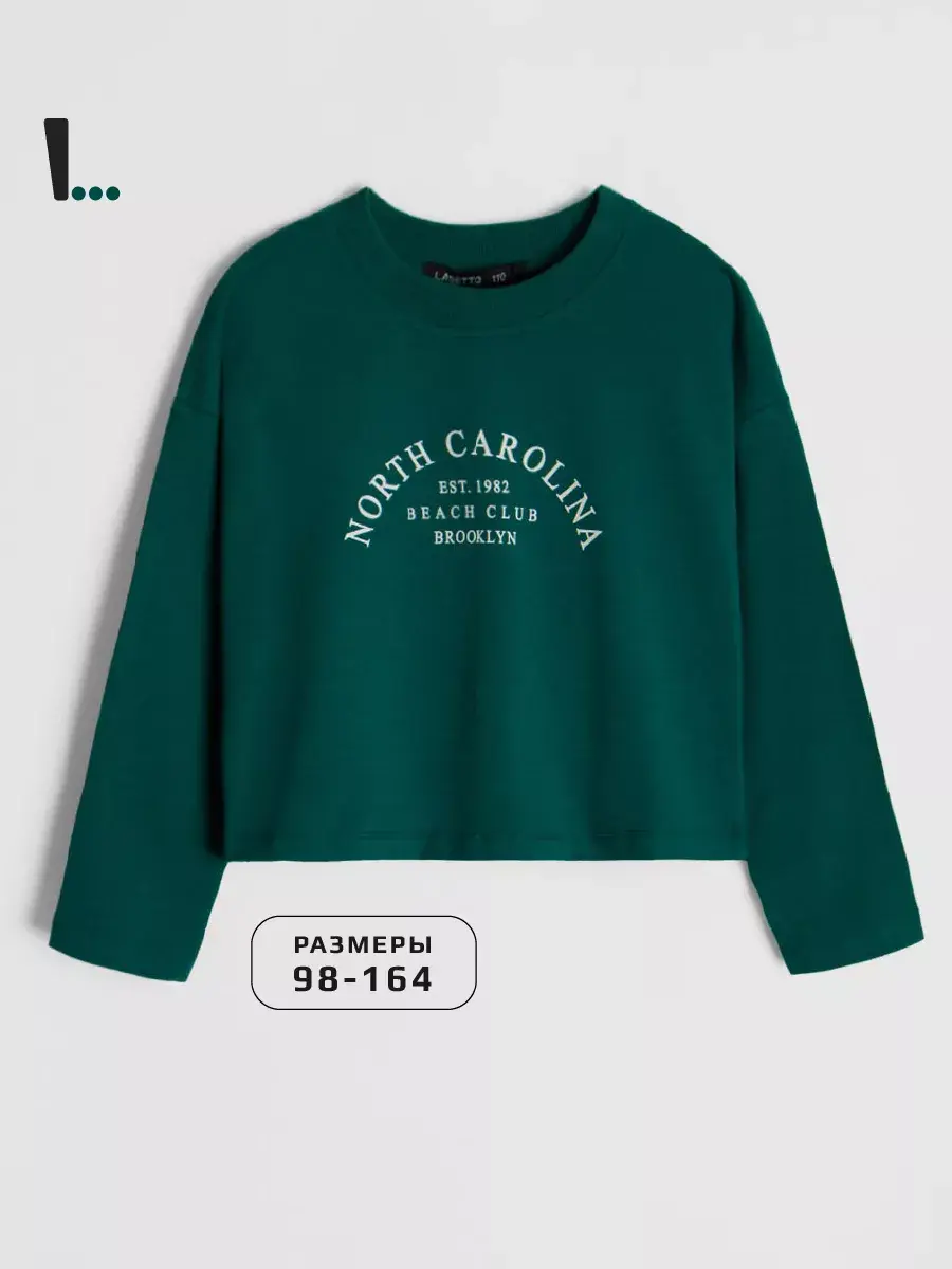 LRTT-285_/_00-0033629 _/_Лонгслив_темно-зеленый_/_Девочки