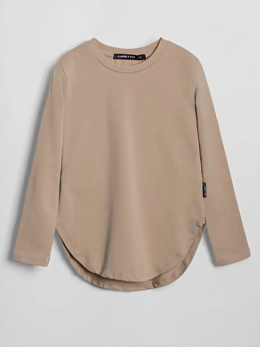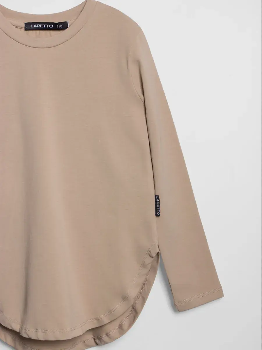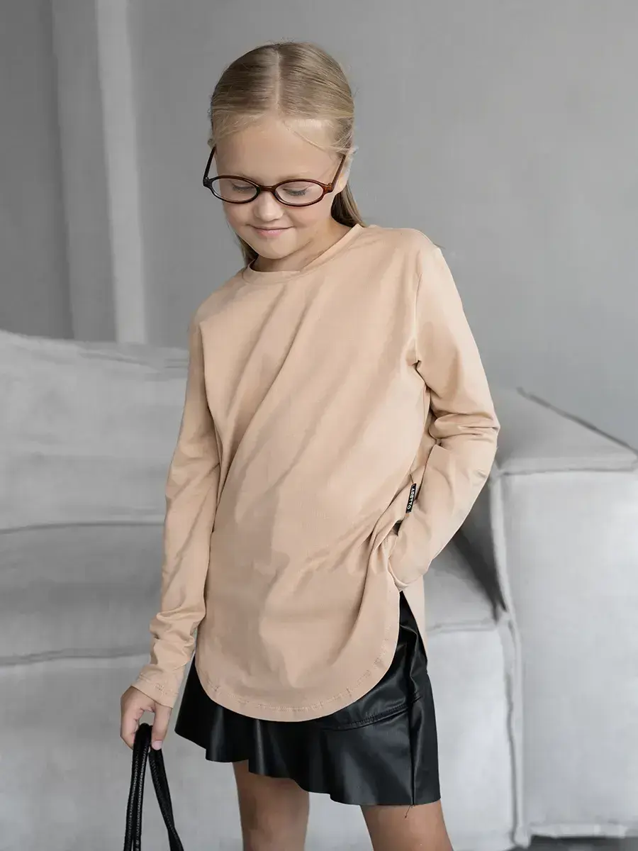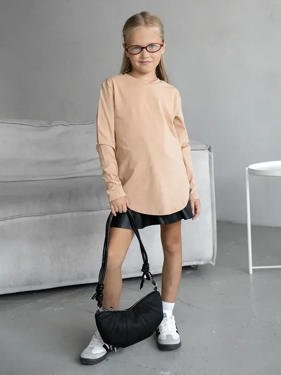Лонгслив детский — эта базовая модель из дышащего, легкого материала обеспечивает абсолютную свободу движений благодаря своему свободному крою и стильному однотонному дизайну. Лонгслив для девочки идеально подойдет на каждую повседневную прогулку или выход в школу.