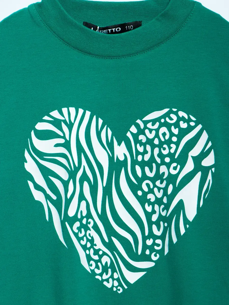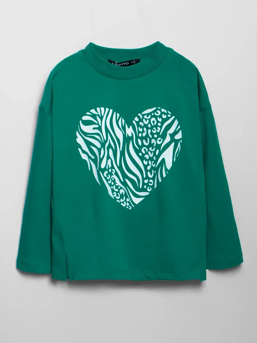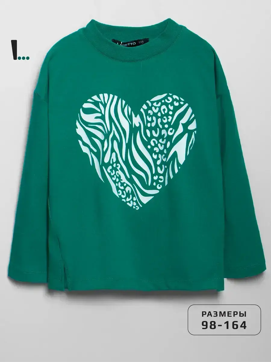 Лонгслив для девочки зеленый - это универсальная вещь для любого времени года! Детский лонгслив эффектно смотрится с любым видом верха и низа в гардеробе. Кофта оверсайз для девочки не сковывает движений и отлично подойдет для активного отдыха, занятий спортом и танцами, а также создания праздничного образа. Лнгслив детский выполнен из Премиум трикотажа с небольшим добавлением эластана, поэтому очень приятная к телу и хорошо тянется. Яркий принт в стиле "сердце" всегда добавит изюминку и выделит среди других! Большое количество трендовых расцветок позволит легко сочетать и создавать модные образы каждый день! Модель рассчитана не только для малышей, но и для подростков. Свитшот для девочки станет незаменим в качестве для дома и отдыха. При производстве вещей мы используем только гипоаллергенные материалы, которые не вызывают раздражения на коже. При выборе изделия ориентируйтесь на таблицу мерок в карточке товара. Обращаем Ваше внимание, что правильное определение размера одежды напрямую зависит от индивидуальных особенностей ребёнка. Коллекция от российского бренда LARETTO - это всегда стильно и качественно! Приятных Вам покупок!