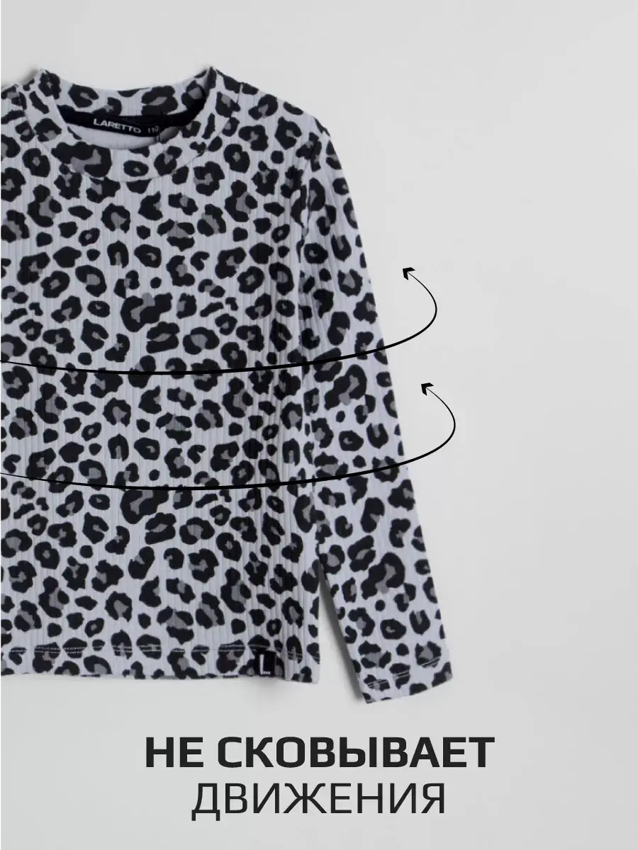 Лонгслив для девочки от бренда LARETTO станет незаменимым атрибутом в гардеробе каждой модницы! Модные леопардовые принты, в стиле зебра и в горошек никого не оставят равнодушными. Модная одежда для детей выполнена из премиального трикотажа в рубчик (кашкорсе риб 5*2), который обеспечивает максимальный комфорт, удобную посадку и эластичность, не ограничивая движения вашего ребенка. Лонгслив отлично подойдёт для весны.