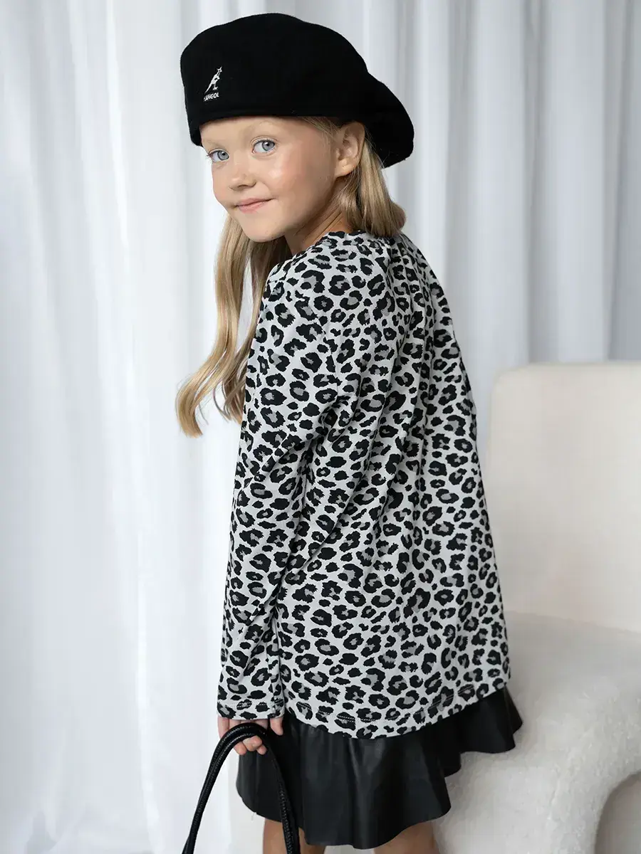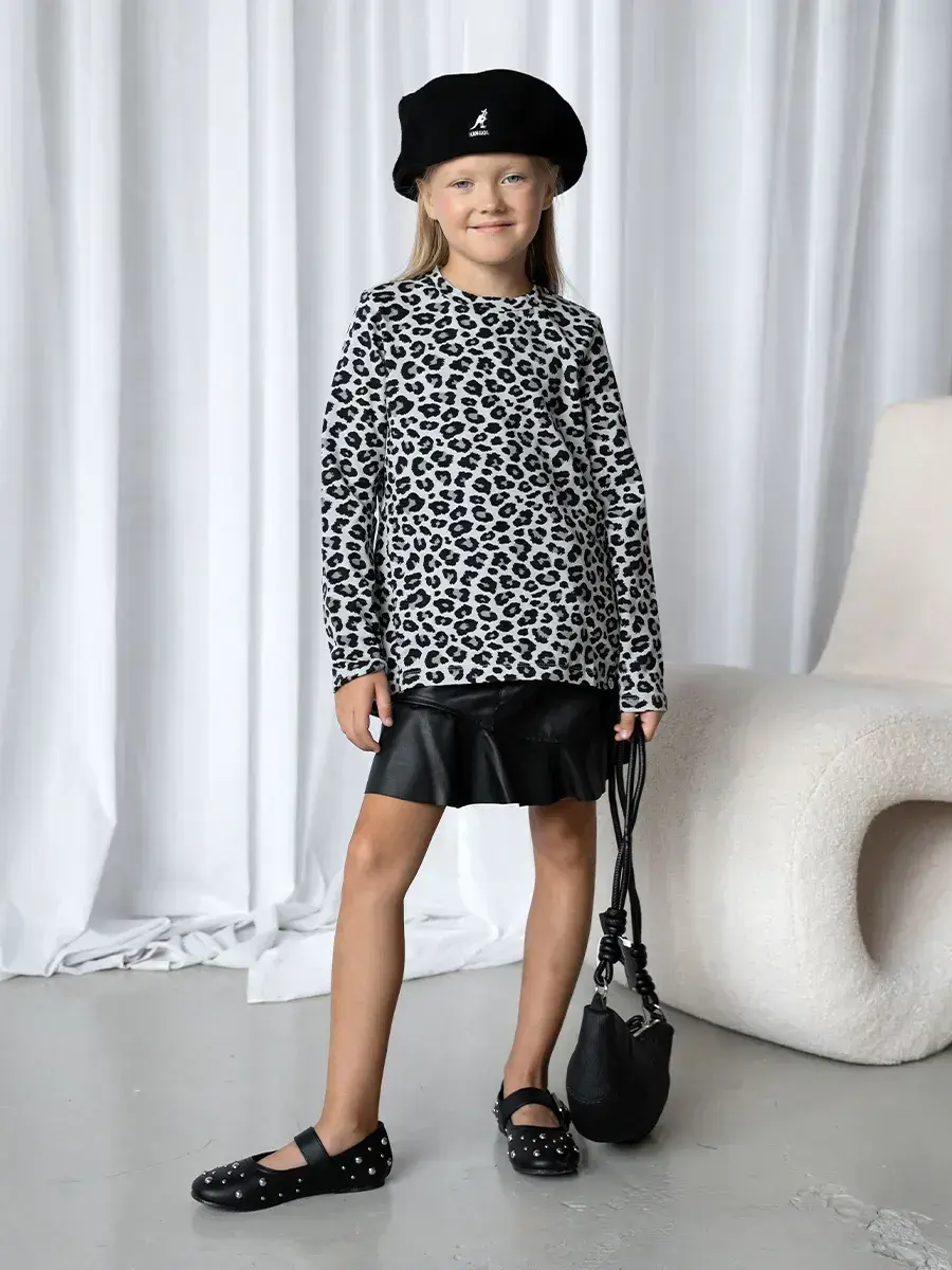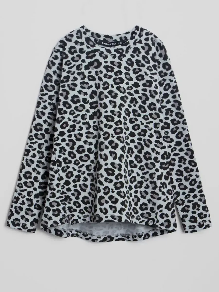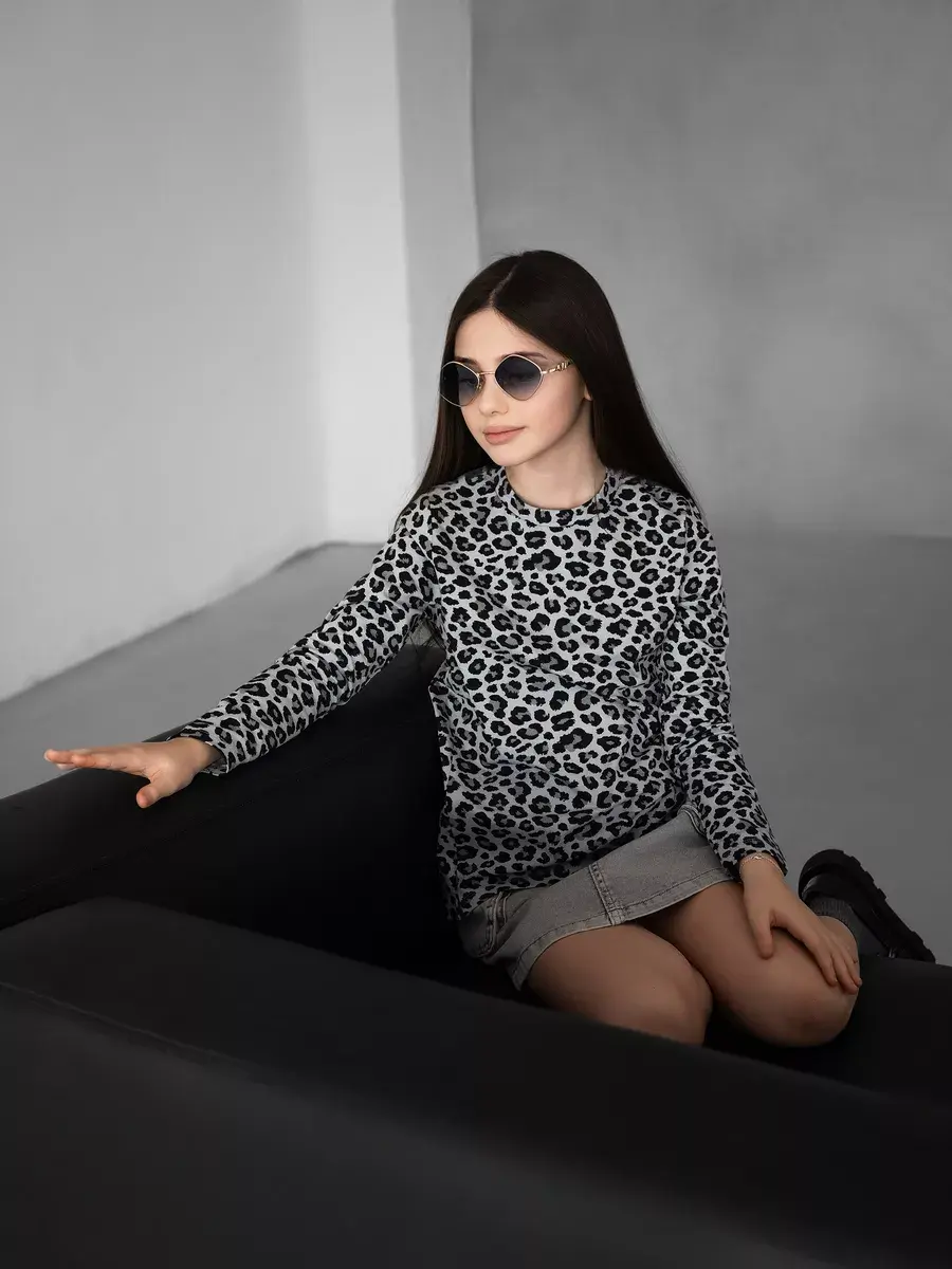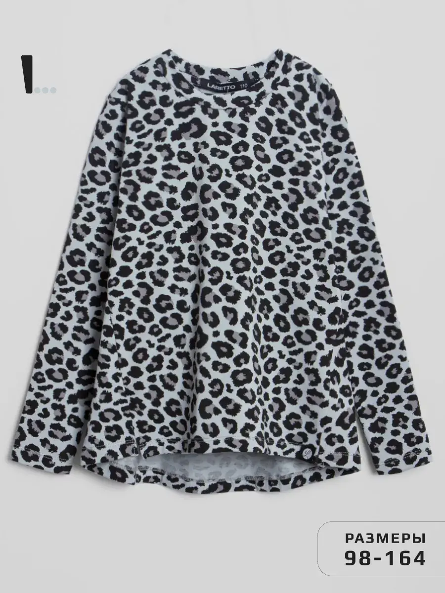 Изготовленный из мягкого трикотажа, этот оверсайз лонг дарит ощущение комфорта и тепла. Его освободный силуэт не сковывает движения и позволяет создавать стильные многослойные образы. Детский лонгслив прекрасно подходит как для повседневной носки ребенку, так и для создания нарядных вечерних образов девочек. Стильная кофточка с леопардовым принтом просто создана для того, чтобы удивлять и выделяться среди модниц.