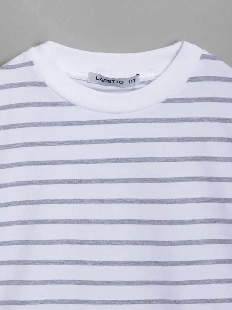 Лонгслив для девочки – это идеальный выбор для стильного и комфортного образа в любое время года. Изготовленная из мягкого и приятного на ощупь материала, она обеспечивает свободу движений и тепло в прохладные дни. Контрастные полоски добавляют игривости и делают лонгслив детский ярким акцентом в гардеробе. Идеально подойдёт для теплой зимы.