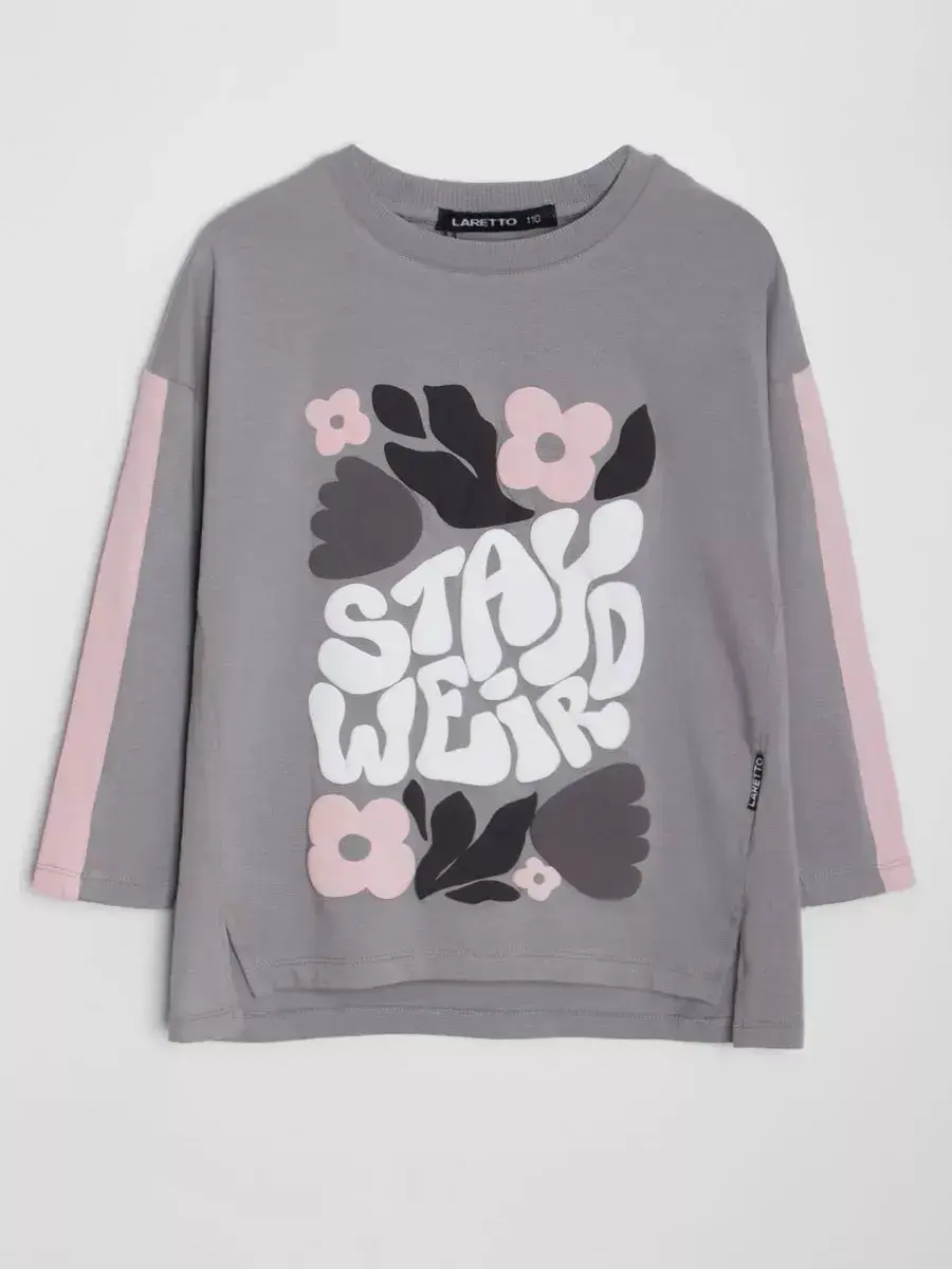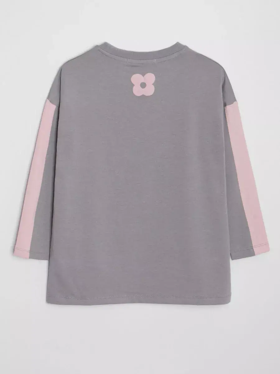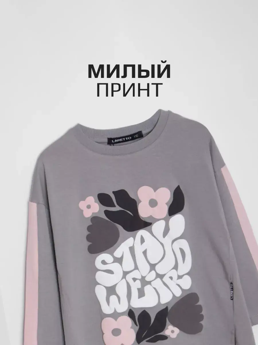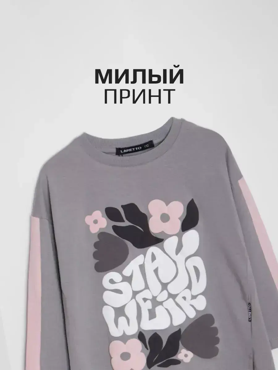 Яркий красочный принт на груди добавляет образу весёлое настроение и индивидуальность, подчеркивая вкус и стиль юной модницы. Благодаря универсальному дизайну, лонгслив легко сочетается с джинсами, лосинами, юбками, спортивными штанами и другой детской одеждой.