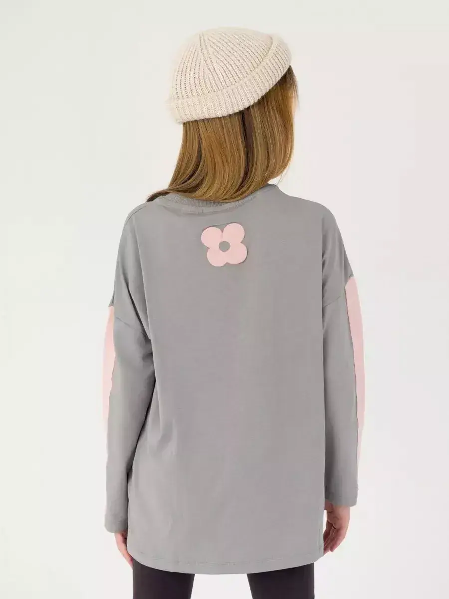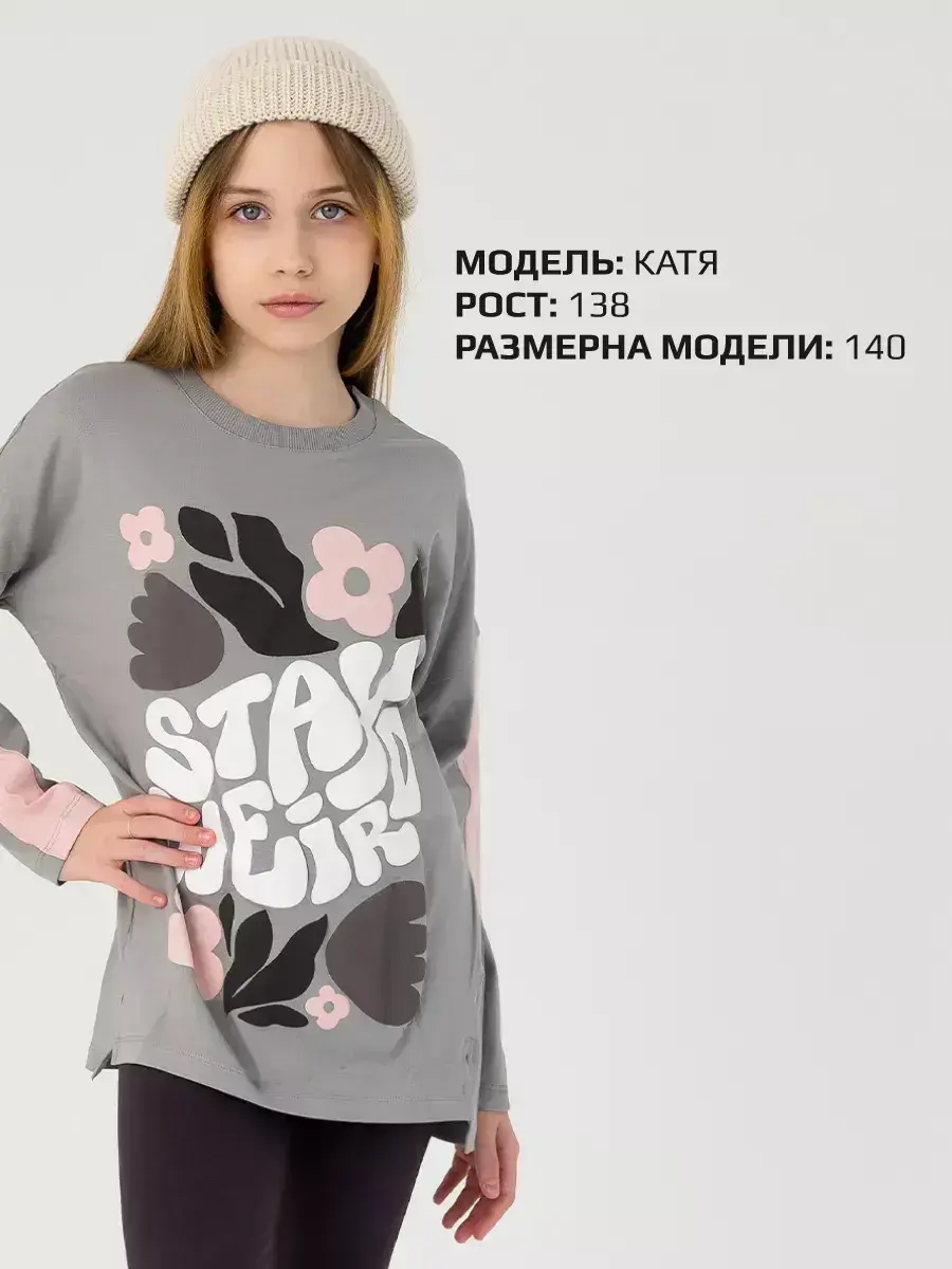 Кофточка с длинными рукавами — отличная альтернатива футболке в прохладную погоду или джемперу, если в нём жарко. Модель имеет свободный прямой крой, не сковывает движений и отлично садится на фигуру ребёнка любого телосложения. Подходит как для повседневной носки в садик, школу или на прогулку, так и для домашнего отдыха, игр и занятий творчеством.