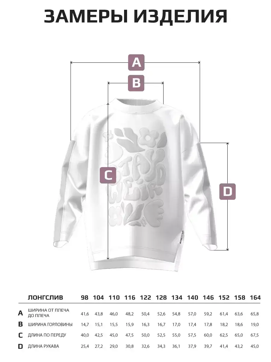 Представляем стильный и практичный лонгслив для девочки с ярким арт-принтом — идеальный выбор для демисезонного гардероба. Этот удобный и красивый лонгслив станет незаменимой вещью на каждый день, сочетая в себе комфорт, универсальность и модный дизайн.