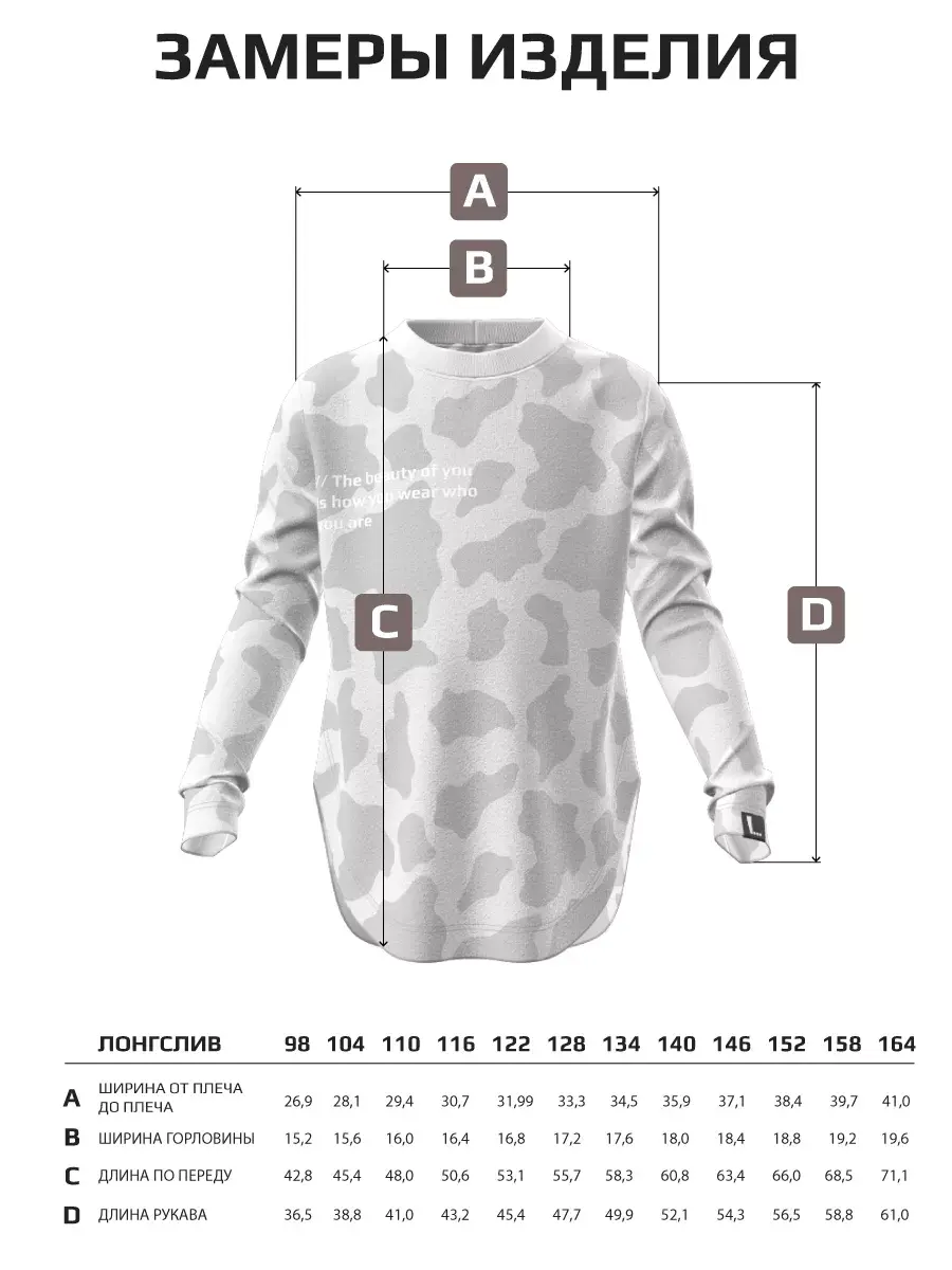 Лонгслив для девочки - стильная и модная одежда, которая идеально подходит для повседневной носки. Эта трикотажная кофта для подростков выполнена в стиле оверсайз, что придаёт ей особую элегантность и комфорт. Удлинённый силуэт делает эту вещь универсальной и подходящей для любого возраста.