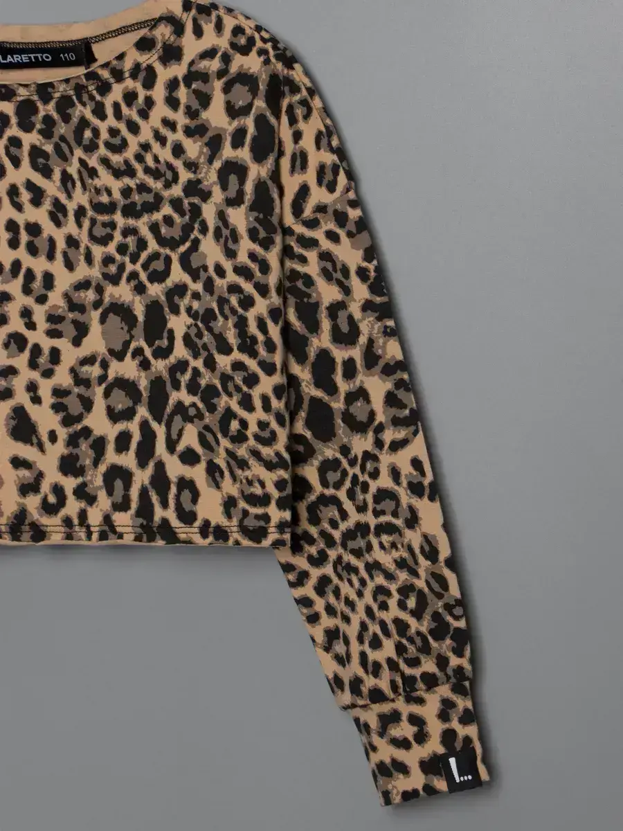 Наш детский укороченный лонгслив - настоящая находна для девочек и подростков! Наш лонг с леопардовым принтом выполнен из высококачественных материалов, чтобы обеспечить комфорт и безопасность вашим детям. Дышащая ткань лонгслива позволяет воздуху циркулировать, сохраняя прохладу тела вашего ребенка в летний период во время прогулок, а также этот лонг идеально подходит для занятий спортом, для детского сада.