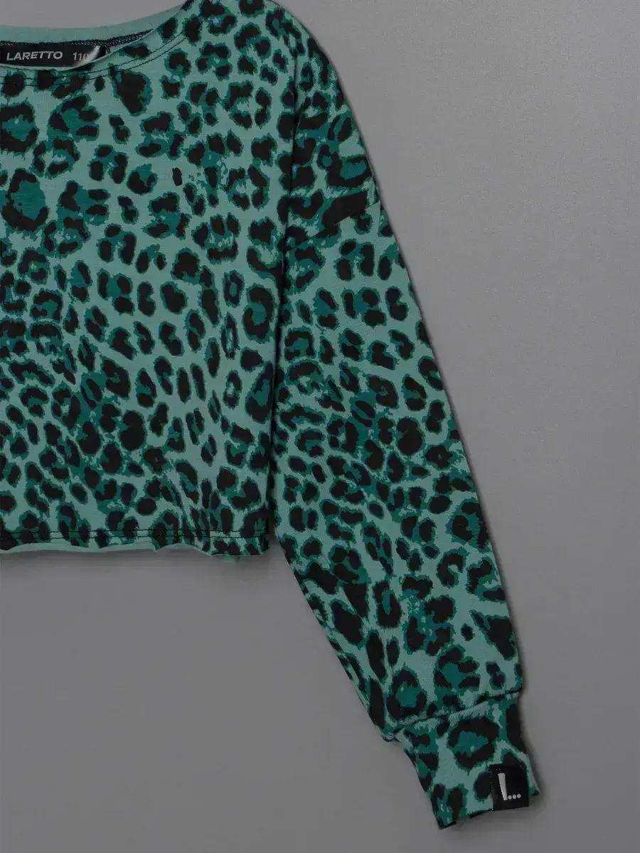 Наш детский укороченный лонгслив - настоящая находна для девочек и подростков! Наш лонг с леопардовым принтом выполнен из высококачественных материалов, чтобы обеспечить комфорт и безопасность вашим детям. Дышащая ткань лонгслива позволяет воздуху циркулировать, сохраняя прохладу тела вашего ребенка в летний период во время прогулок, а также этот лонг идеально подходит для занятий спортом, для детского сада.